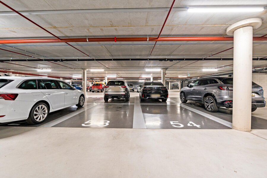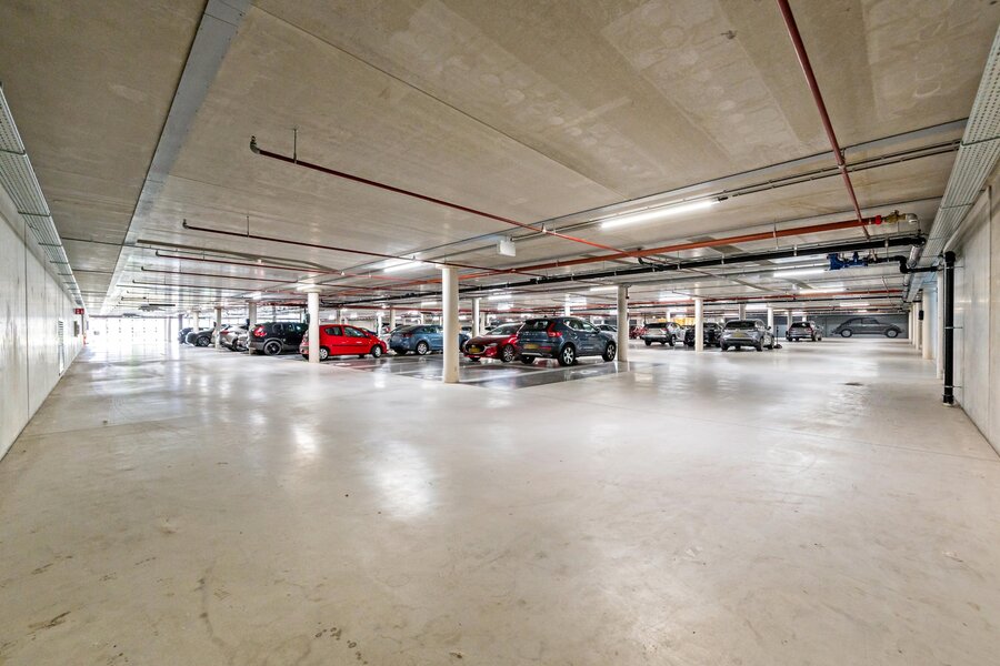 In de onderbouw op niveau -1 bevinden zich twee parkeerplaatsen en op niveau -2 is een grote berging met extra elektra-aansluiting. Op aanvraag en met instructies van de v.v.e. is het mogelijk om een laadunit aan te laten leggen.