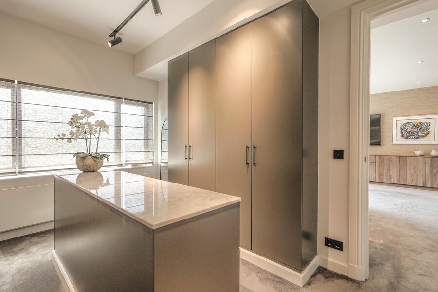 Met zes slaapkamers, vijf badkamers, een aparte werkruimte en een volledig ingerichte fitnessruimte in het tuinhuis, biedt de woning ruimte voor elk facet van het moderne leven. Overal vind je maatwerk: kasten, details en zichtlijnen die niet alleen esthetisch, maar ook functioneel zijn.