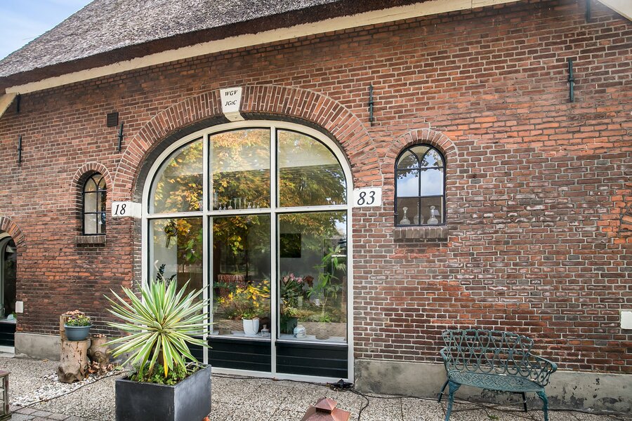 En hoe beter dan deze woonomgeving dagelijks te ervaren dan in deze subliem onderhouden woonboerderij anno 1883. Al bij het aanrijden krijgt u hier een warm "thuis" gevoel. Ruim opgezette woonwijk met sfeervolle vrijstaande woningen waar deze woonboerderij de boventoon voert. Goed gesitueerd op de kavel waardoor een prachtige brede voortuin is ontstaan met toegang tot het erf via 3 separate paden. De woonboerderij bestaat uit het woonhuis, een gastenverblijf en de enorme schuur met garages en bergingen.