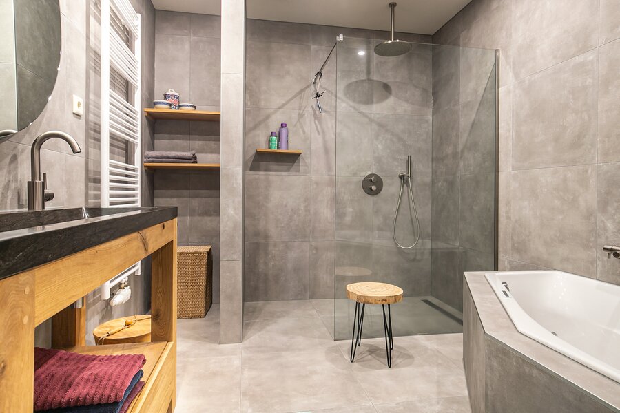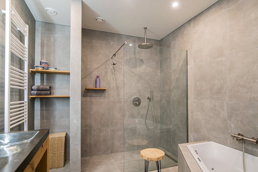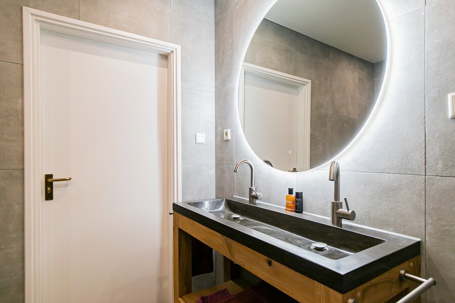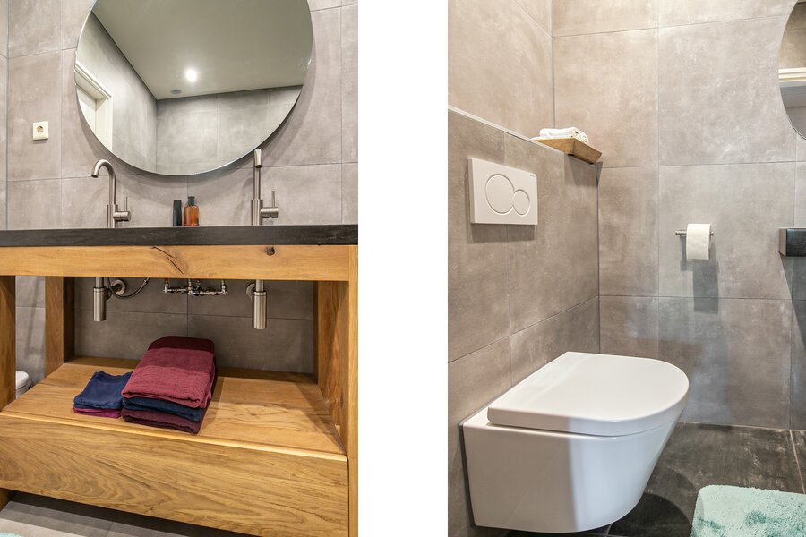 Na deze indrukken komen we vervolgens in hal met toegang tot de twee slaapkamers, de luxe badkamer, het separate toilet, de tussenhal met opgang naar de enorme tweede verdieping en de toegang tot het achterhuis.