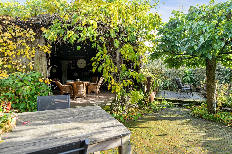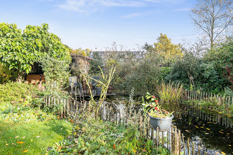 Prachtig aangelegd en onderhouden met veel volwassen (fruit-)bomen, diverse terrassen, de voormalig hooischuur welke garant staat voor dagen/avonden BBQ plezier met vrienden en familie, vijverpartij en intieme plekjes. En alles in complete privacy en gedurende de dag een meedraaiende zon.