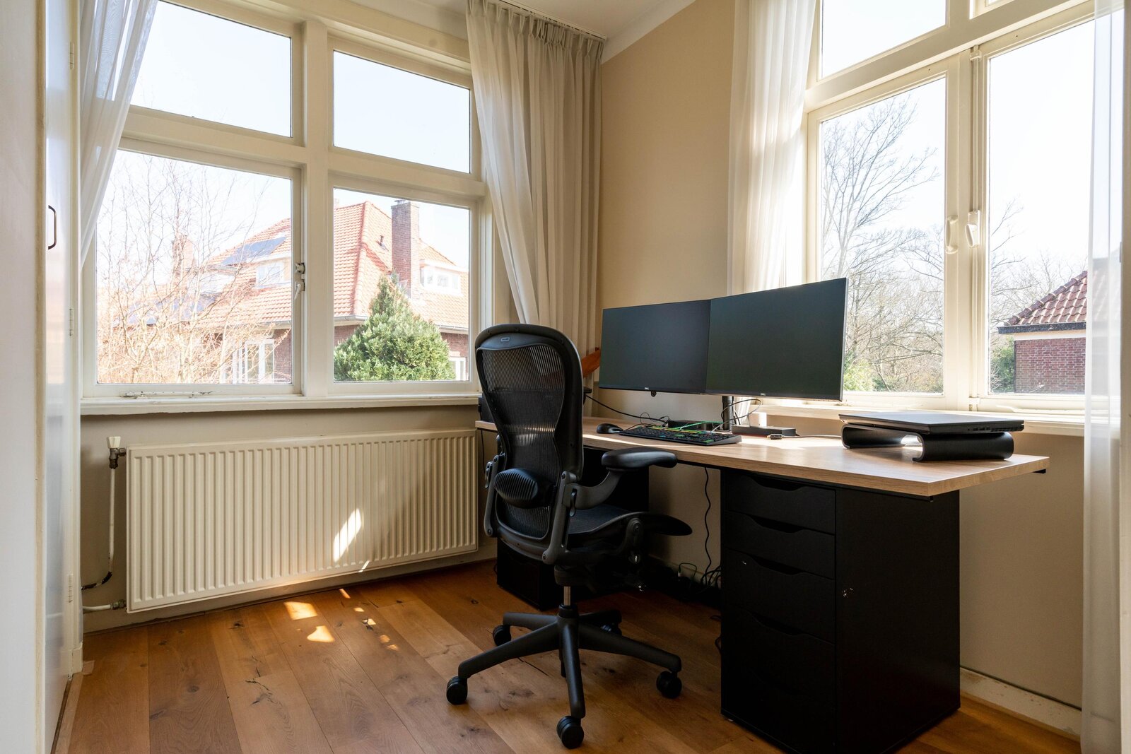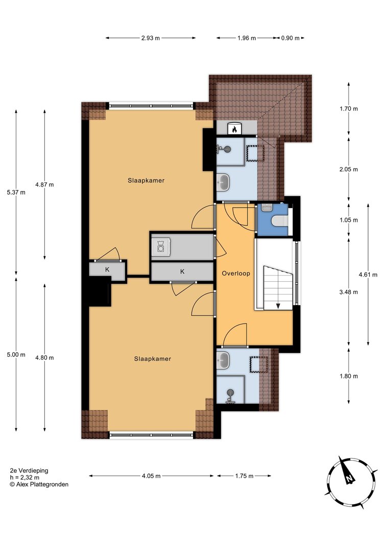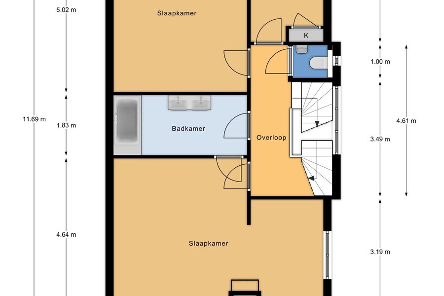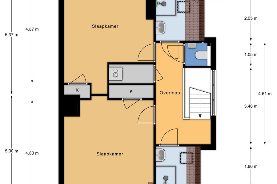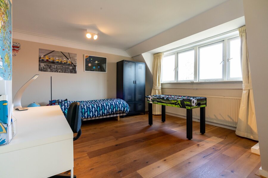 Op de tweede verdieping treft u nog eens twee slaapkamers en maar liefst twee extra badkamers – ideaal voor grotere gezinnen of gasten. Tevens vindt u hier de opstelplaats voor wasmachine en droger en de CV-installatie. De slimme indeling zorgt voor optimaal comfort en privacy voor alle bewoners.