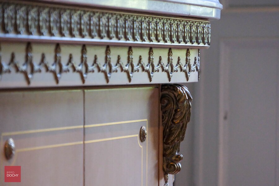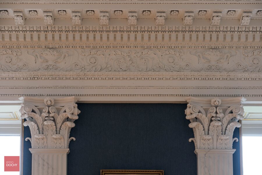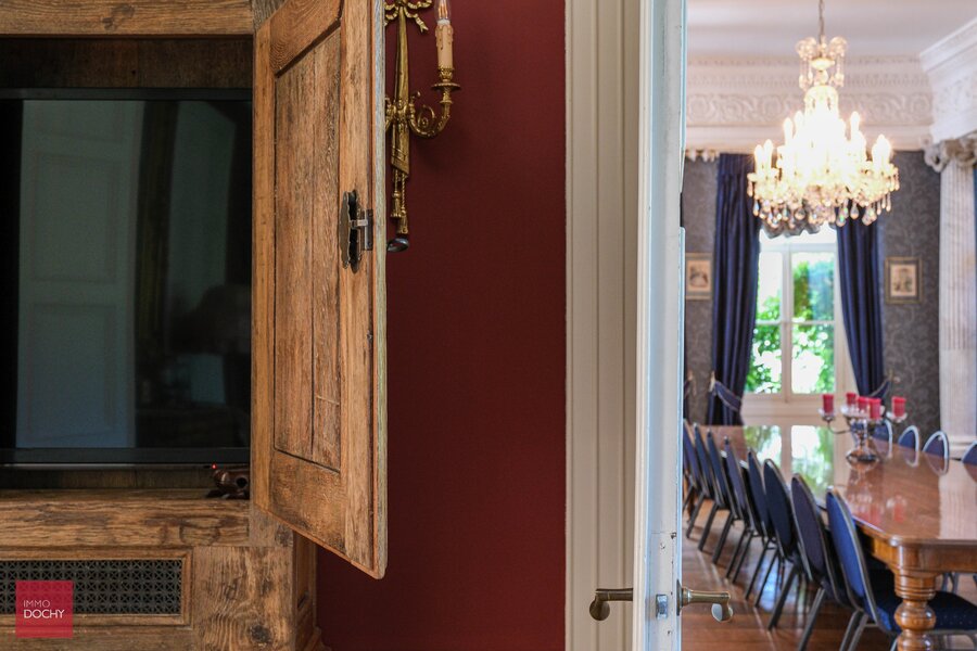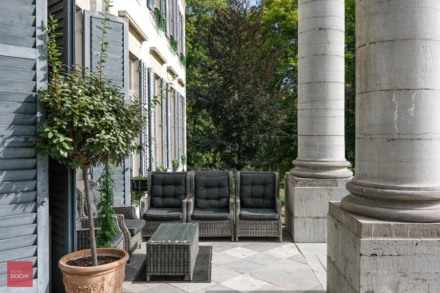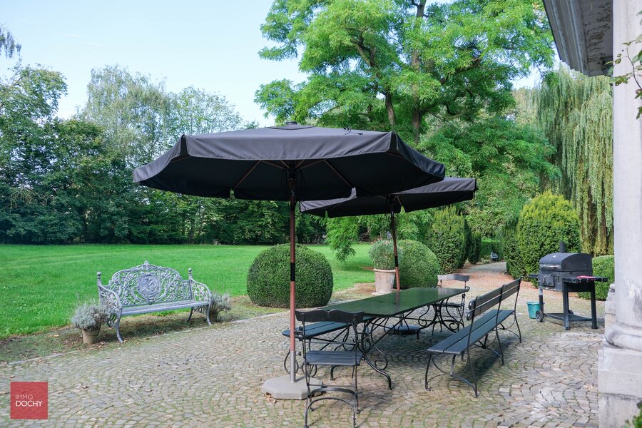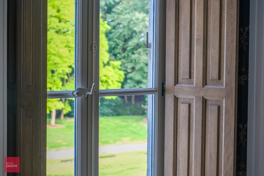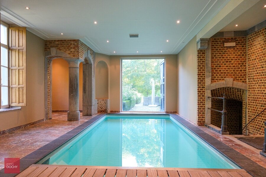 De indeling: Imposante ontvangsthal, groot salon in neoclassistische stijl, ruime eetkamer, dagelijkse zitkamer in parket met open haard, hedendaagse keuken, bibliotheek, bureel, vestiaire, theekamer, hobbyruimte, prachtige orangerie, binnenzwembad met jacuzzi en sanitair. Op de eerste verdieping zijn er 5 slaapkamers met 4 ensuite badkamers, linnenkamer, verschillende dressingrooms en daarboven een grote polyvalente zolderruimte. In de 2de vleugel van het kasteel bevindt zich een hedendaags gastenverblijf met afzonderlijke toegang bestaande uit authentieke living met ingerichte keuken, 4 slaapkamers en 2 badkamers, dressing en toegang tot het zwembad. Het kasteel is volledig onderkelderd met authentieke gewelven die leiden tot de ondergrondse ontspanningsruimte met atelier, feestzaal, bar, cinemaroom, sanitair, wijnkelder, voorraadkelder en CV-kelder.