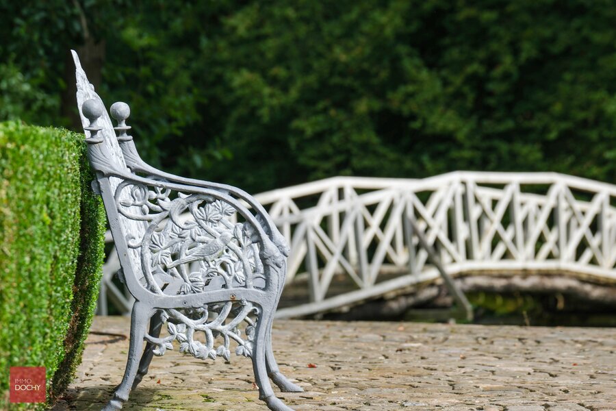 Het landgoed beslaat een aanzienlijke oppervlakte (ca 3,8ha) en omvat uitgestrekte tuinen met prachtige omwalling en deel bos. De aangelegde tuin rondom het kasteel is perfect onderhouden en herbergt een volledig gerestaureerde ijskelder/uitkijktoren die momenteel dienst doet als B&B. Het domein wordt afgesloten met een modern vergund zonnepanelenpark (250 panelen), wat het energieverbruik herleidt tot nul (oa ook dubbele beglazing, recente cv, led-verlichting...)
