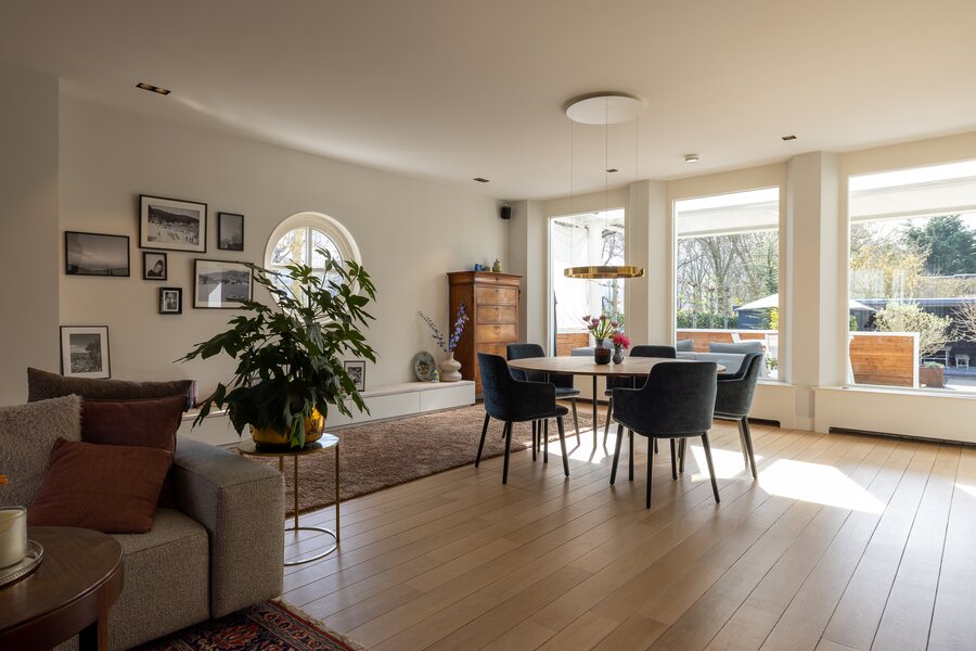 Binnen wordt u verwelkomd in een oase van ruimte en licht. De afgelopen vijf jaar is de woning compleet gerenoveerd en voorzien van de nieuwste technologische snufjes. De verlichting, het alarmsysteem en de verwarming zijn eenvoudig te bedienen via een app, waardoor uw wooncomfort naar een hoger niveau wordt getild.