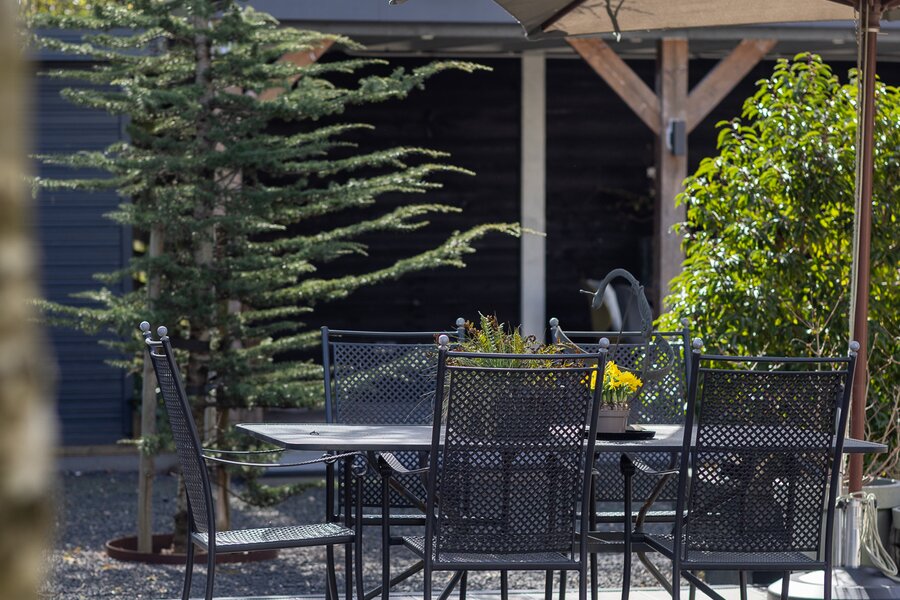 - Fraai aangelegde tuin met bijgebouw met veranda en buitenkeuken