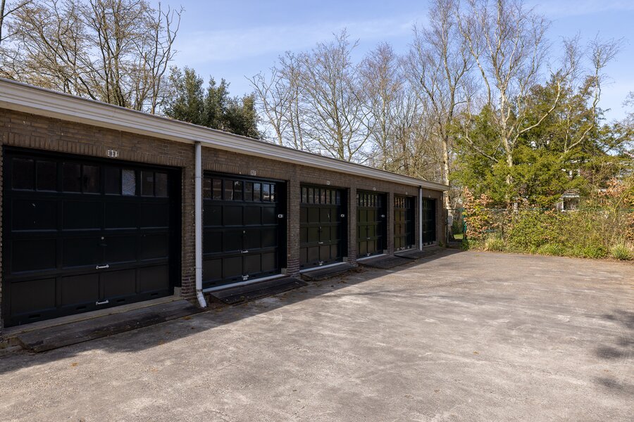 - Een ruime garagebox op achtergelegen terrein met eigen ontsluiting apart te koop voor €60.000,- k.k.
