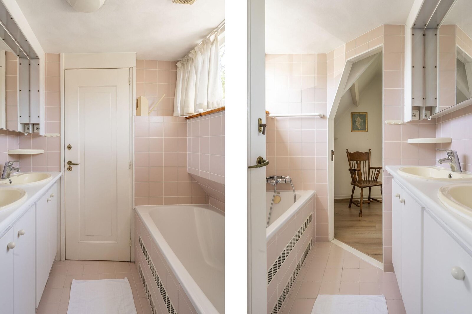 Vanaf de overloop zijn drie slaapkamers. Twee slaapkamers zijn van gelijk formaat en beschikken over handige bergruimte in vaste kasten. Daarnaast is via 1 van deze slaapkamers de badkamer en een toilet bereikbaar. De badkamer beschikt over een wastafelmeubel en een ligbad. De riante (ouder) slaapkamer is de grootste van de drie kamers en heeft een hoog plafond waardoor deze erg ruimtelijk is. Daarnaast zorgen beide dakkapellen voor nog meer volume en via de tuindeuren is het balkon op het zuiden bereikbaar. Ook vanaf de overloop is het toilet en de badkamer op deze verdieping en een grote vliering bereikbaar.