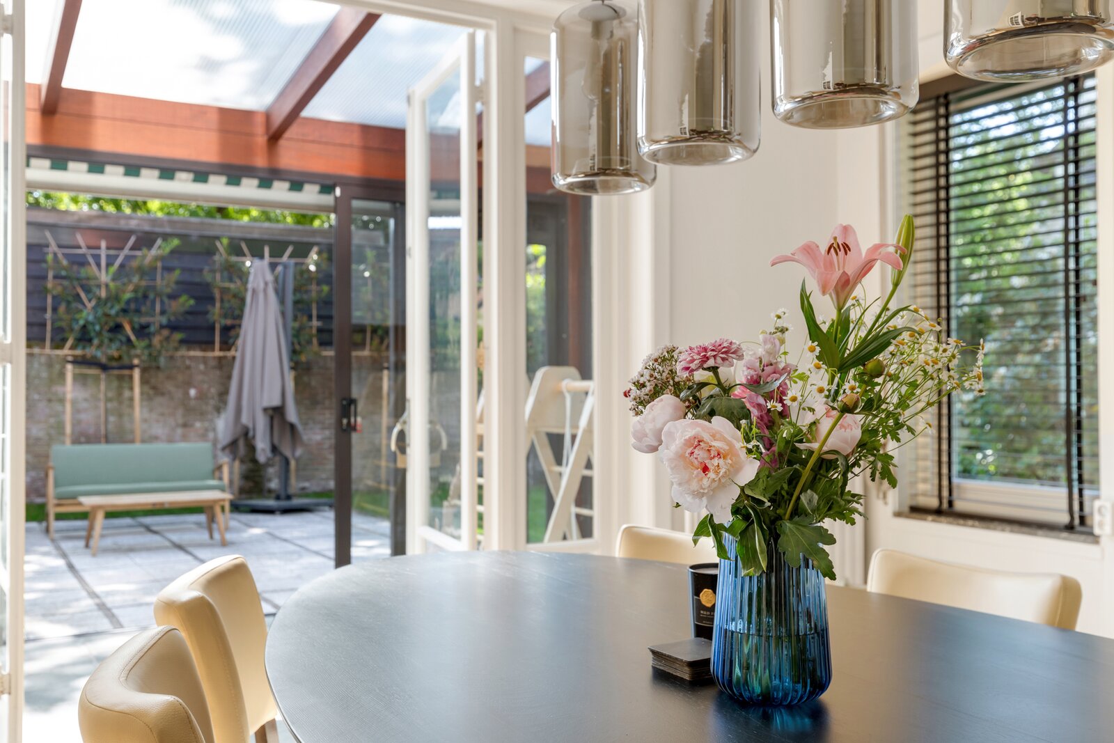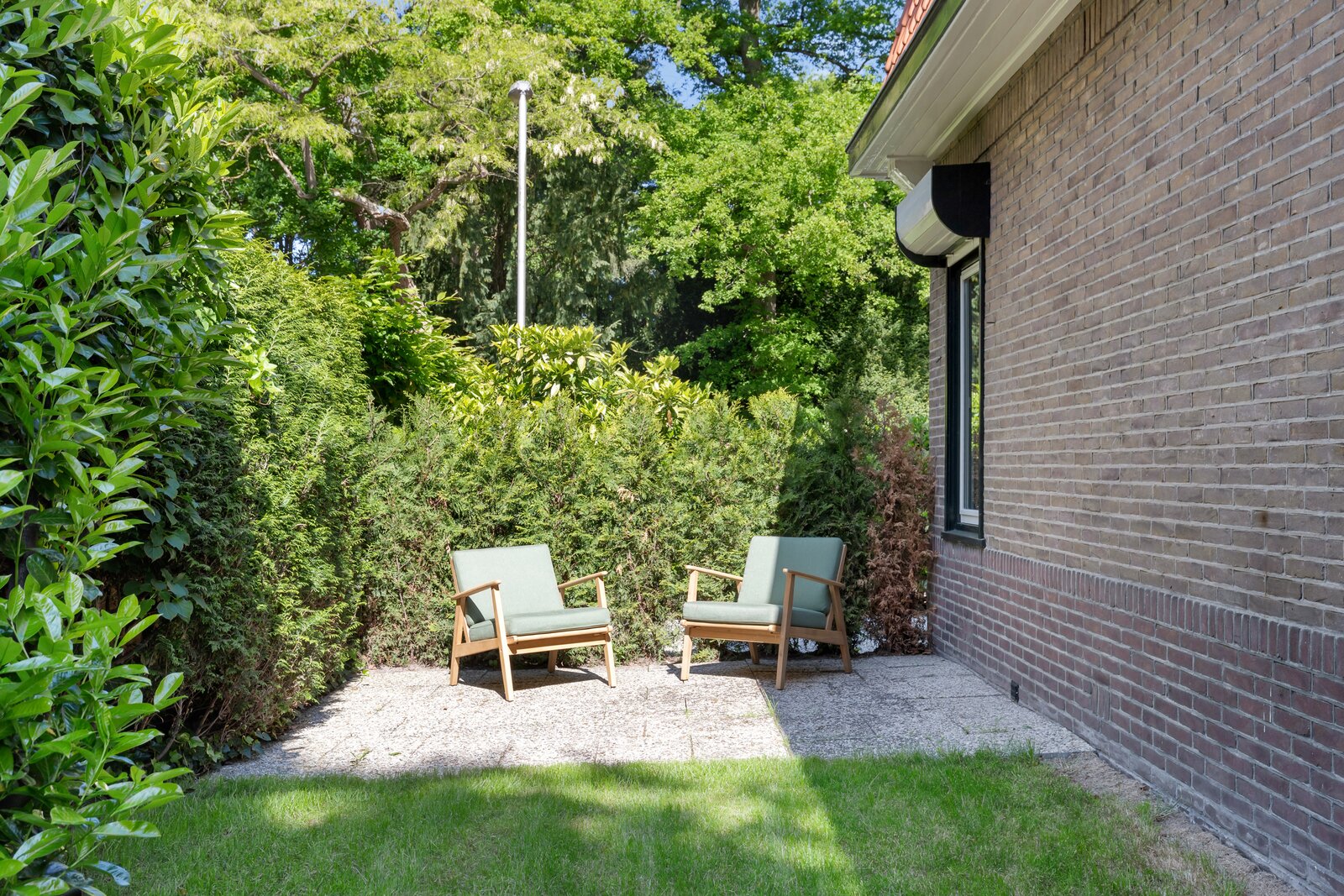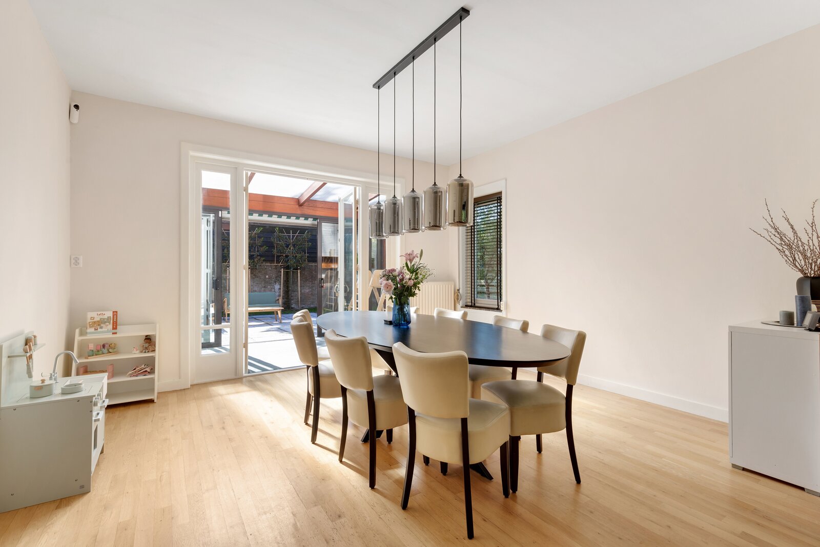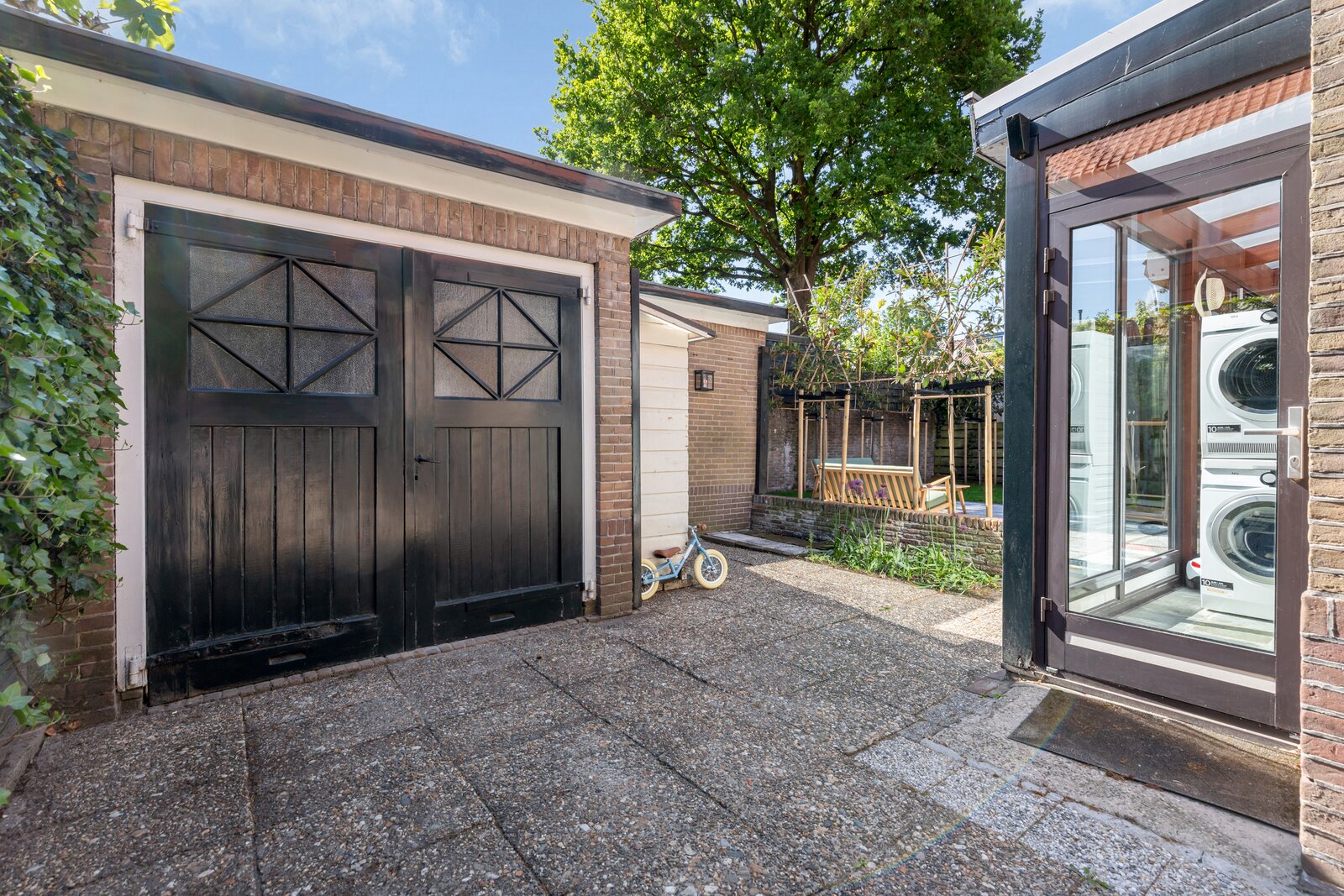 Buiten beschikt de woning over een oprit voor meerdere auto's en ruimte voor uitbreiding. De tuin is rondom gelegen en biedt veel zon, privacy en ruimte voor kinderen om heerlijk en veilig buiten te spelen.
