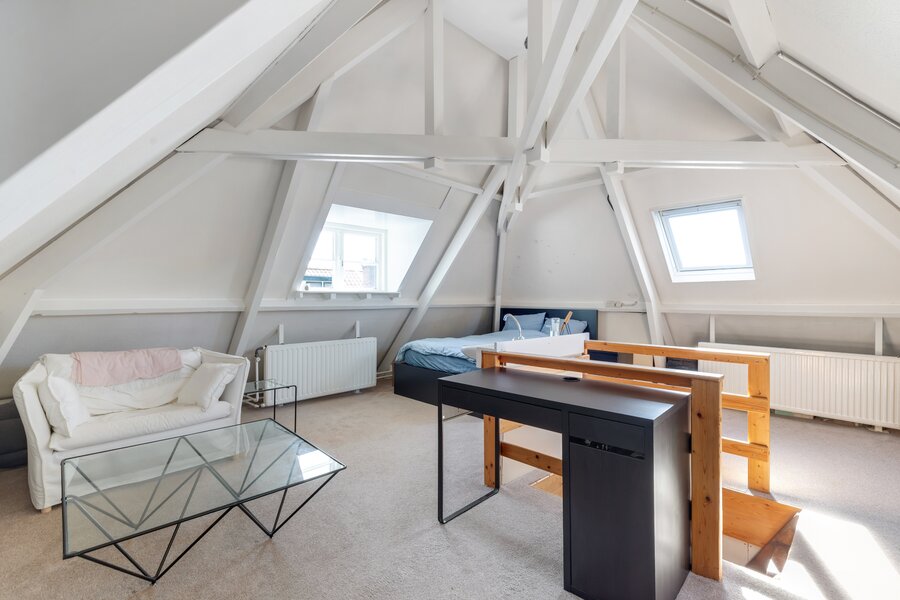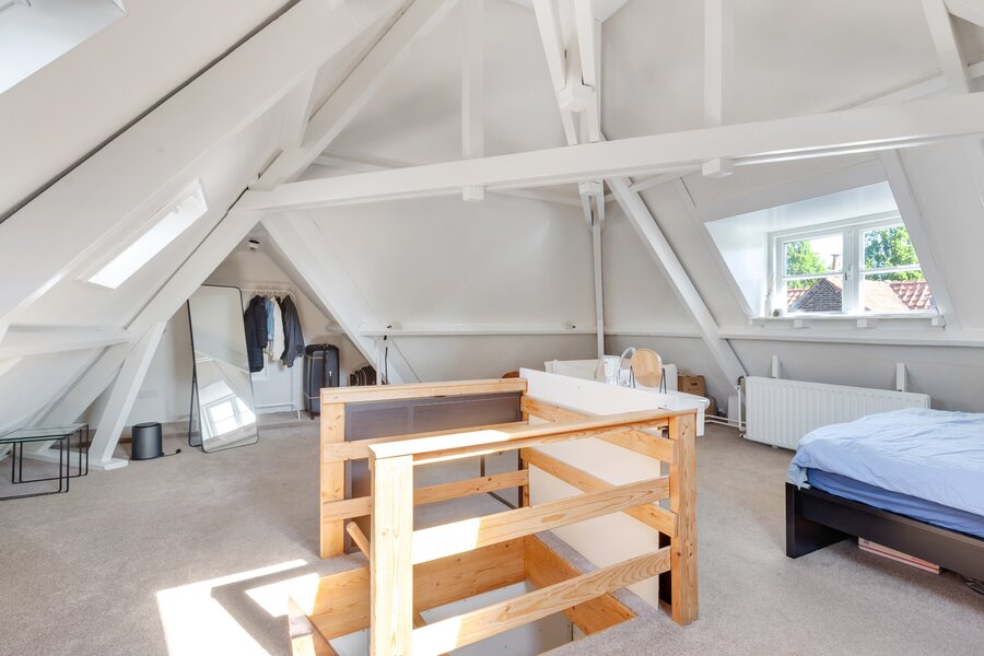 Op zolder treft men een aanvullende (zeer ruime) slaapkamer die op dit moment is ingericht voor een au-pair. Er is bovendien voldoende ruimte om deze verdieping uit te breiden met een extra slaapkamer en een tweede badkamer. Deze verdieping heeft alle potentie; of je nu voor een riante master bedroom met badkamer of een tieneretage met slaap- en studeerruimte gaat. Bovendien is de woning op deze manier eenvoudig aan te passen aan een groter (samengesteld) gezin of een combinatie van wonen en werken aan huis.