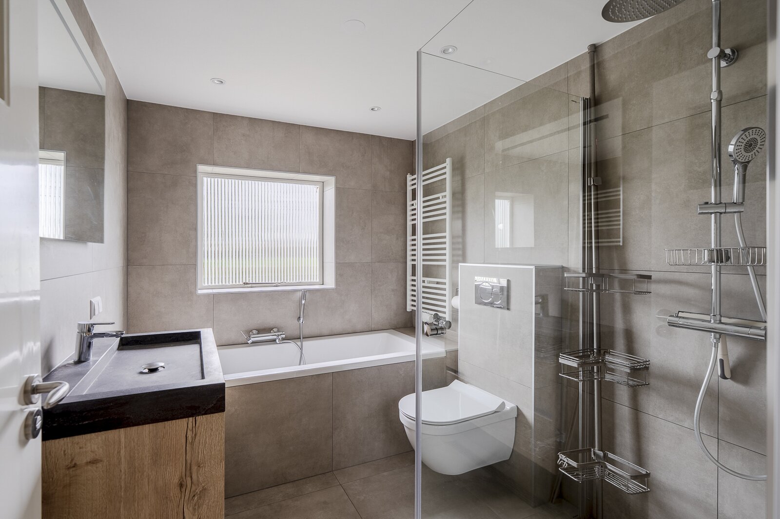 Aan de zijkant van de woning bevindt zich een separate werkkamer, welke indien gewenst kan worden afgesloten. Aan de achterzijde is een aparte wasruimte met extra bergruimte.