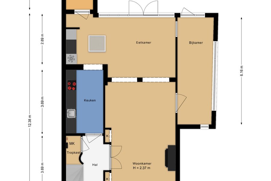 - Huur is excusief gas, elektra en waterlasten.