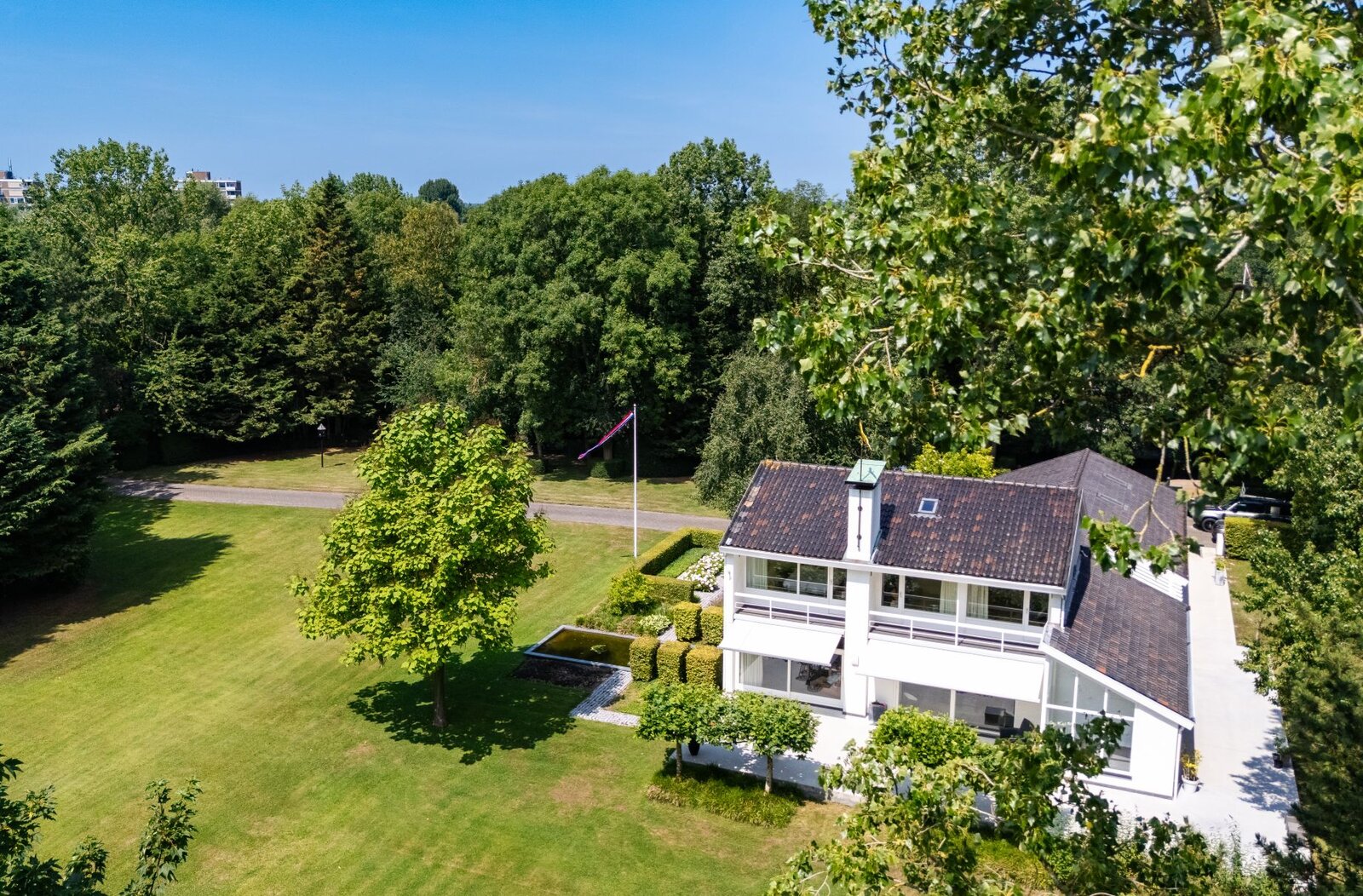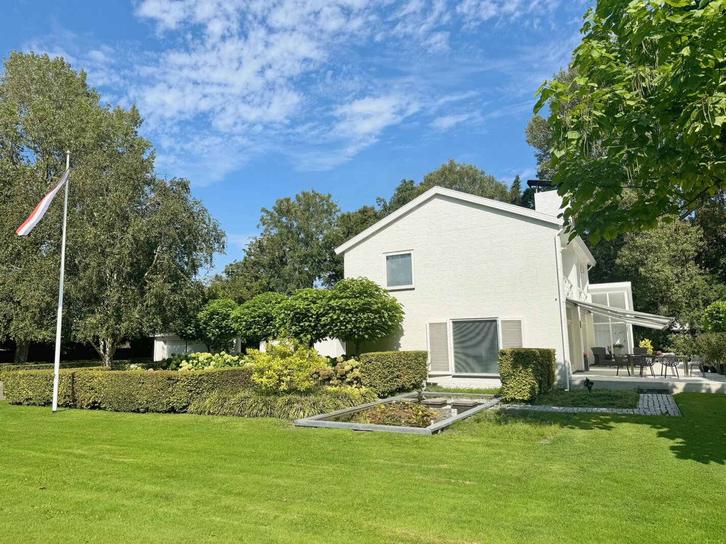 Als kers op de taart wordt de voorzijde van de woning gesierd door een prachtige vijver, die bijdraagt aan de serene en luxe uitstraling van het geheel.