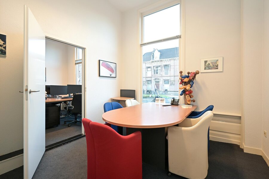 Dit prachtig karakteristiek hoekherenhuis beschikt over een achtertuin, een balkon en een dakterras waardoor u elk moment van de dag van de zon kunt genieten. De begane grond is thans in gebruik als kantoor en het bovenhuis als woning. Deze bestemming geeft u diverse mogelijkheden voor invulling van uw woon-/werkwensen.