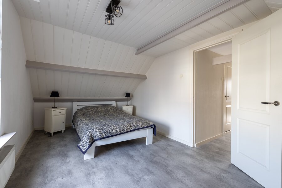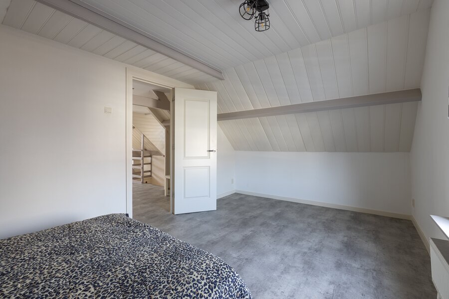 Op de slaapverdieping is een hoge open ruimte met daarin een riante open slaapkamer aan de voorzijde en een afgescheiden slaapkamer aan de tuinzijde.