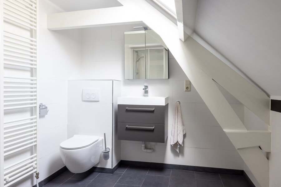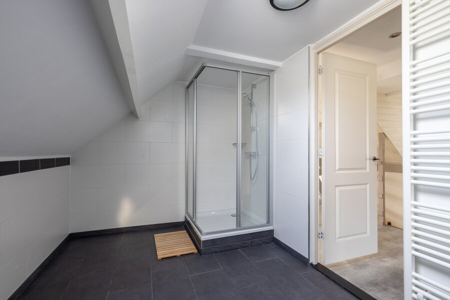 De moderne badkamer (in het midden van deze slaaplaag) is uitgerust met een inloopdouche, 2e toilet en wastafel.