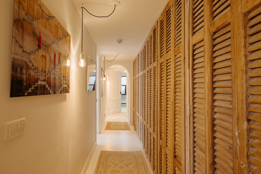 Op de benedenverdieping bevinden zich drie slaapkamers, twee volwaardige badkamers en een aparte, praktische wasruimte. Bijzonder is de lange gang die is uitgerust met op maat gemaakte inbouwkasten met unieke louvredeuren; esthetisch sterk én uiterst functioneel.