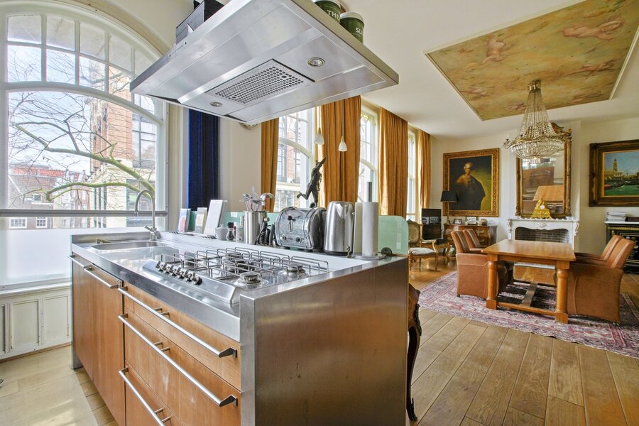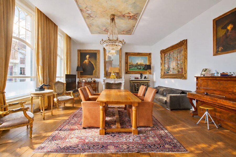 The presence of an elevator, the spacious roof terrace of approximately 27 m², the impressive ceiling heights, and the high-quality finishes make this a property that rarely becomes available. You'll live here in the heart of the historic city center, just around the corner from Kalverstraat and the 9 Straatjes, surrounded by culture, restaurants, and boutiques. Within walking distance of the Stopera, Rijksmuseum, and Concertgebouw. At the same time, the location within the apartment complex ensures peace and privacy.