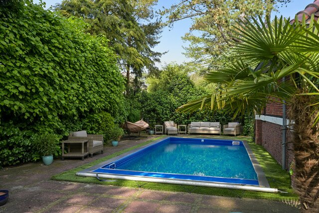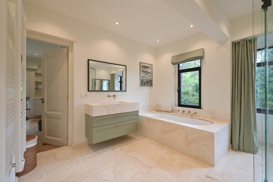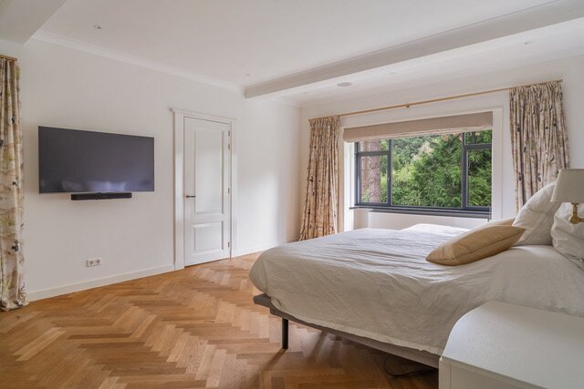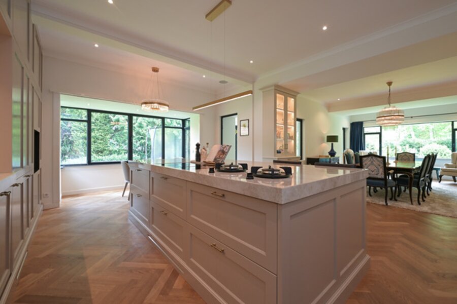 In a prime residential area, close to the center of Wassenaar, at the foot of the dunes detached villa, renovated to perfection, on a beautiful secluded plot, heated swimming pool, 7 bedrooms, 4 bathrooms, 4 living areas, including a separate room for guests, staff or teenagers, turn key and ready to move in.