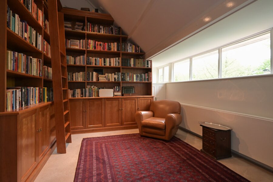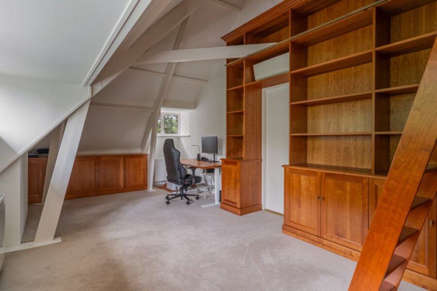 2e Verdieping: Overloop, vide, 2 slaapkamers (waarvan 1 thans in gebruik als laundry), complete moderne badkamer, 2 studeerkamers, mediaroom, apart toilet, berging en zolderruimte.