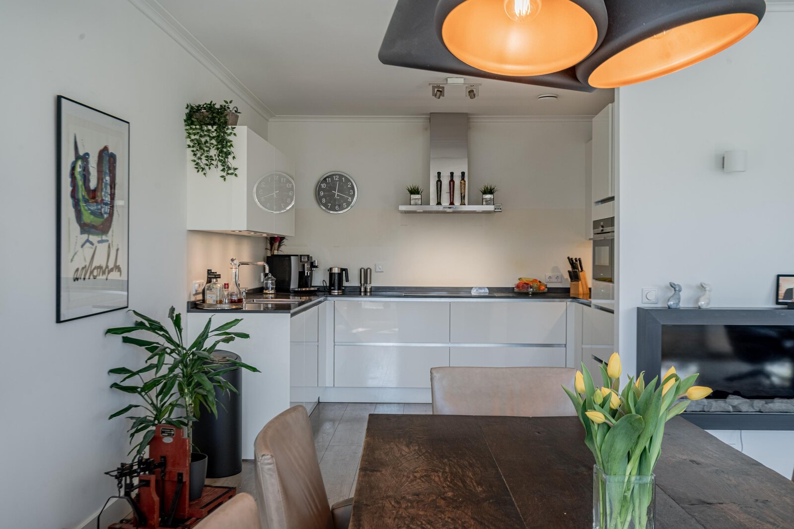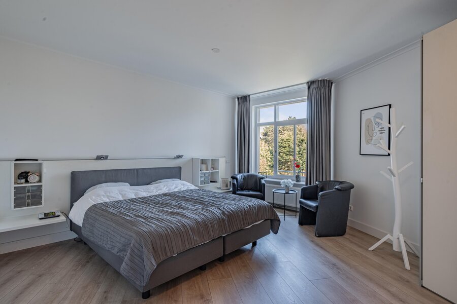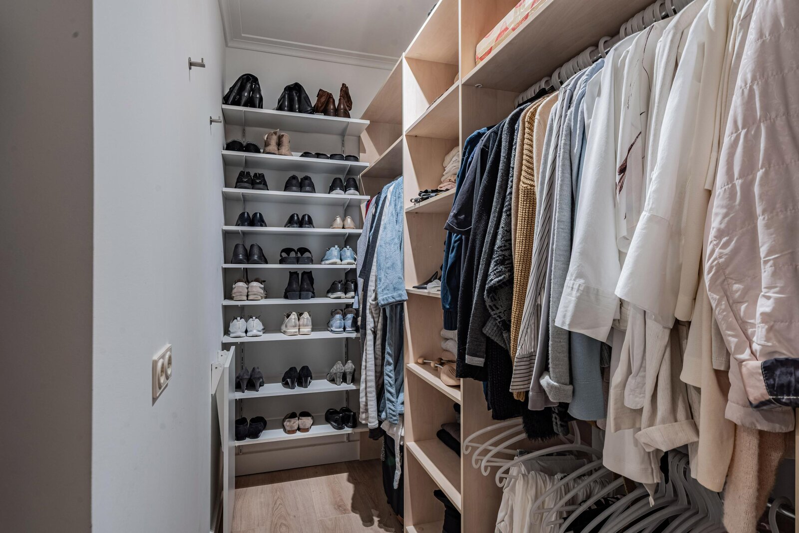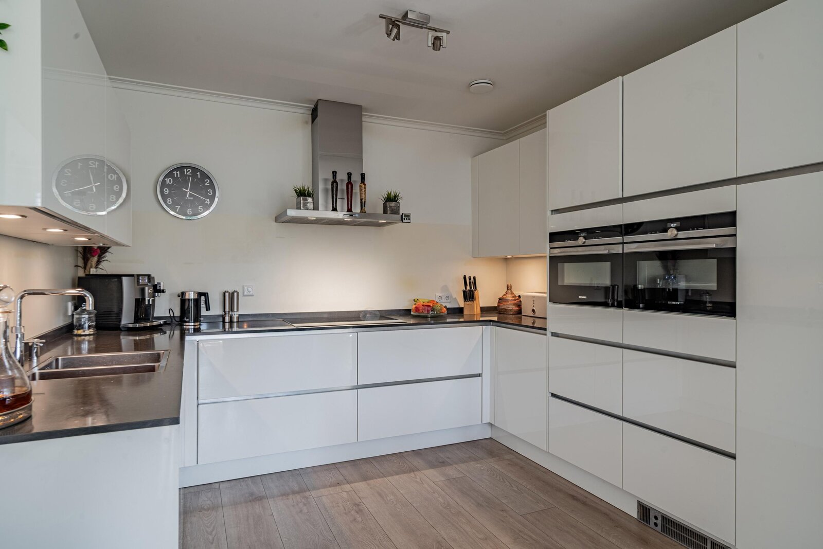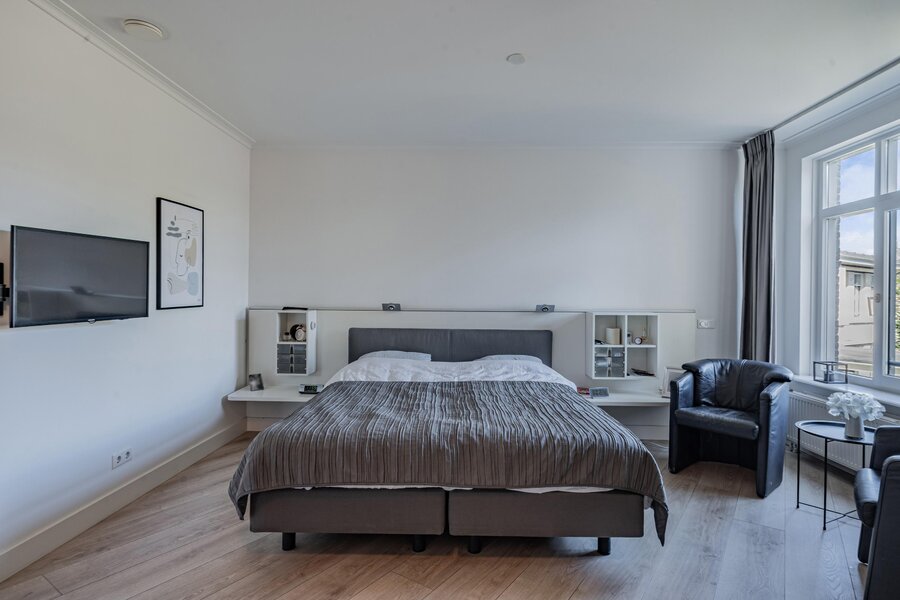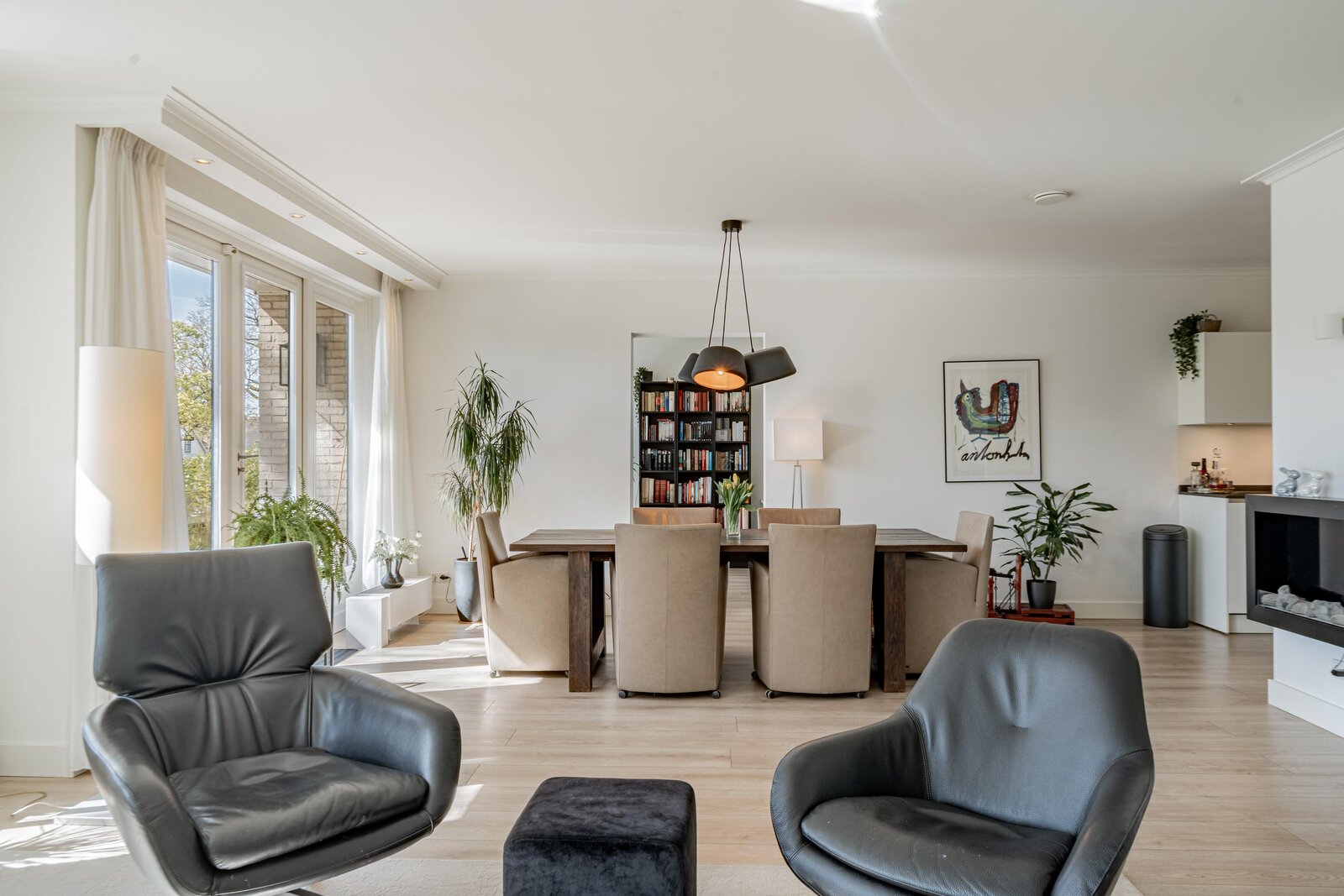 Indeling: entree, ruime hal, garderobe, marmeren vrijhangend toilet, kleedkamer, royale hoofdslaapkamer met toegang tot luxe marmeren badkamer met ligbad, separate douche, vrijhangend toilet, dubbel wastafelmeubel en vloerverwarming, ruime 2e werk-/slaapkamer met openslaande deuren naar het terras op het zuiden grenzend aan de woonkamer, vanuit de hal wordt door openslaande deuren met roedeverdeling de royale living bereikt, deze living heeft een praktische en gezellige erker en beschikt over openslaande deuren naar het grote zonnige terras op het zuiden, de ruime keuken uit 2017 is voorzien van veel luxe zoals granieten werkblad, Quooker, hete lucht oven, combi oven, koelkast, vaatwasser, elektrische kookplaat en afzuigkap. In het appartement bevindt zich tevens nog een ruime inpandige berging met onder andere aansluiting voor wasapparatuur, CV Ketel en een separate vriezer.