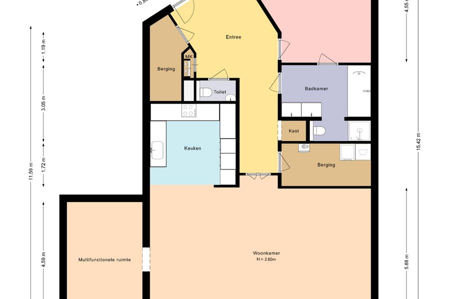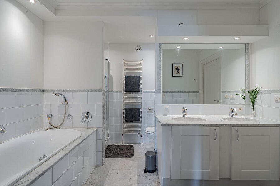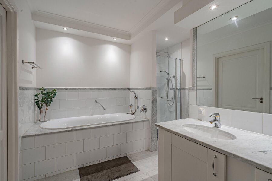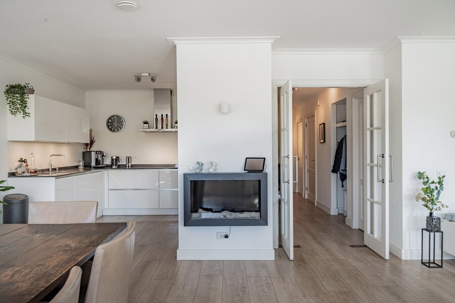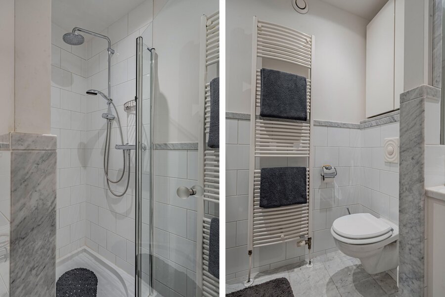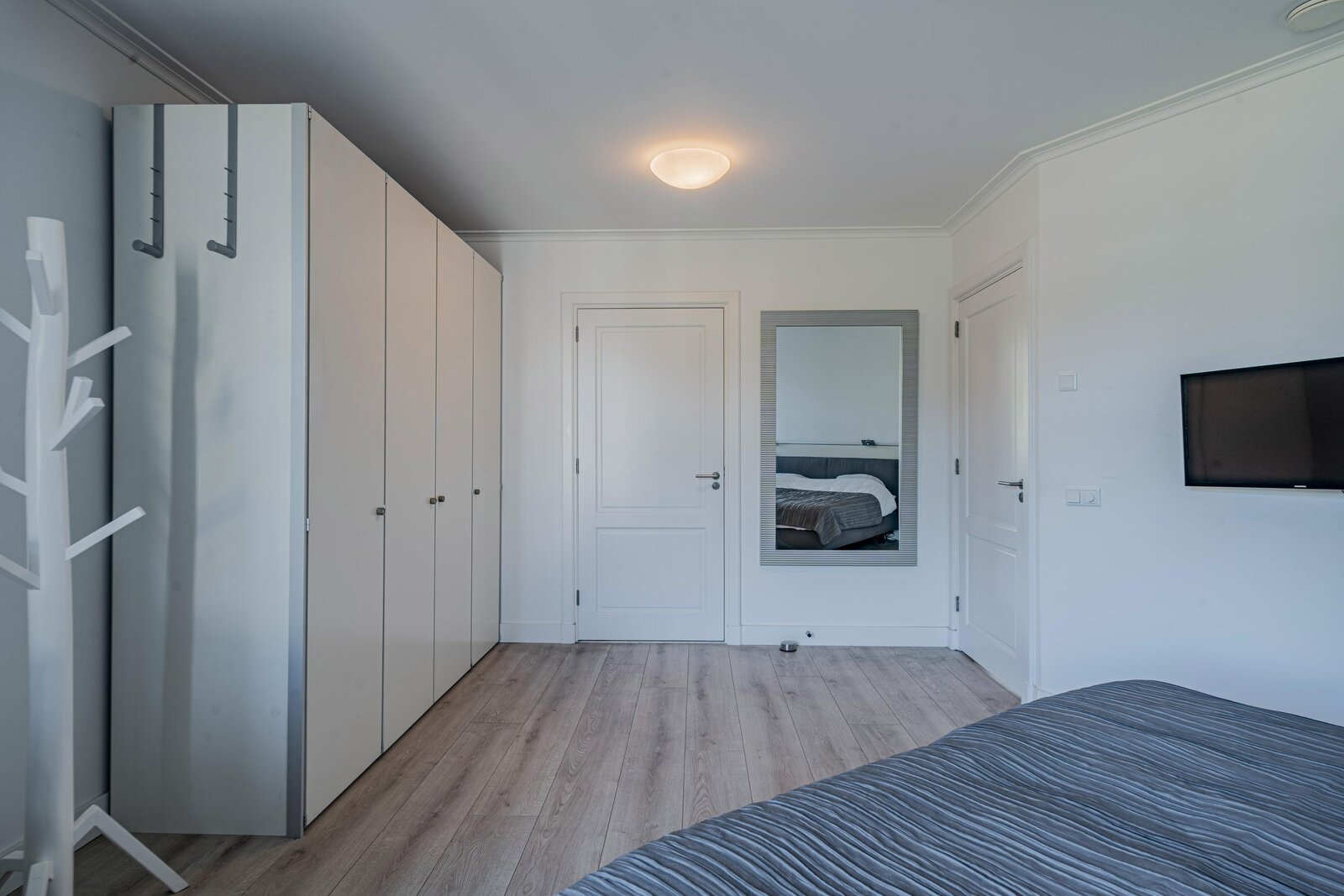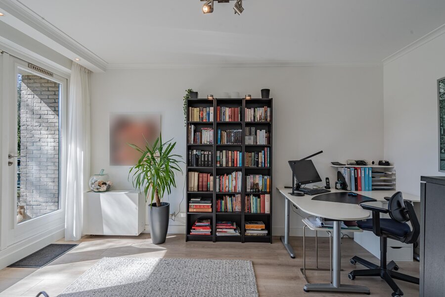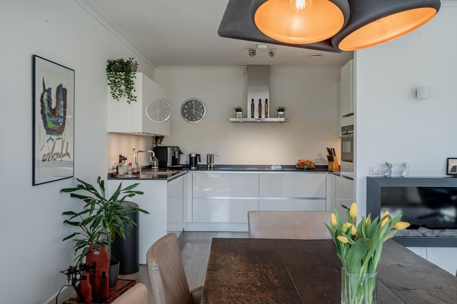 Indeling: entree, ruime hal, garderobe, marmeren vrijhangend toilet, kleedkamer, royale hoofdslaapkamer met toegang tot luxe marmeren badkamer met ligbad, separate douche, vrijhangend toilet, dubbel wastafelmeubel en vloerverwarming, ruime 2e werk-/slaapkamer met openslaande deuren naar het terras op het zuiden grenzend aan de woonkamer, vanuit de hal wordt door openslaande deuren met roedeverdeling de royale living bereikt, deze living heeft een praktische en gezellige erker en beschikt over openslaande deuren naar het grote zonnige terras op het zuiden, de ruime keuken uit 2017 is voorzien van veel luxe zoals granieten werkblad, Quooker, hete lucht oven, combi oven, koelkast, vaatwasser, elektrische kookplaat en afzuigkap. In het appartement bevindt zich tevens nog een ruime inpandige berging met onder andere aansluiting voor wasapparatuur, CV Ketel en een separate vriezer.