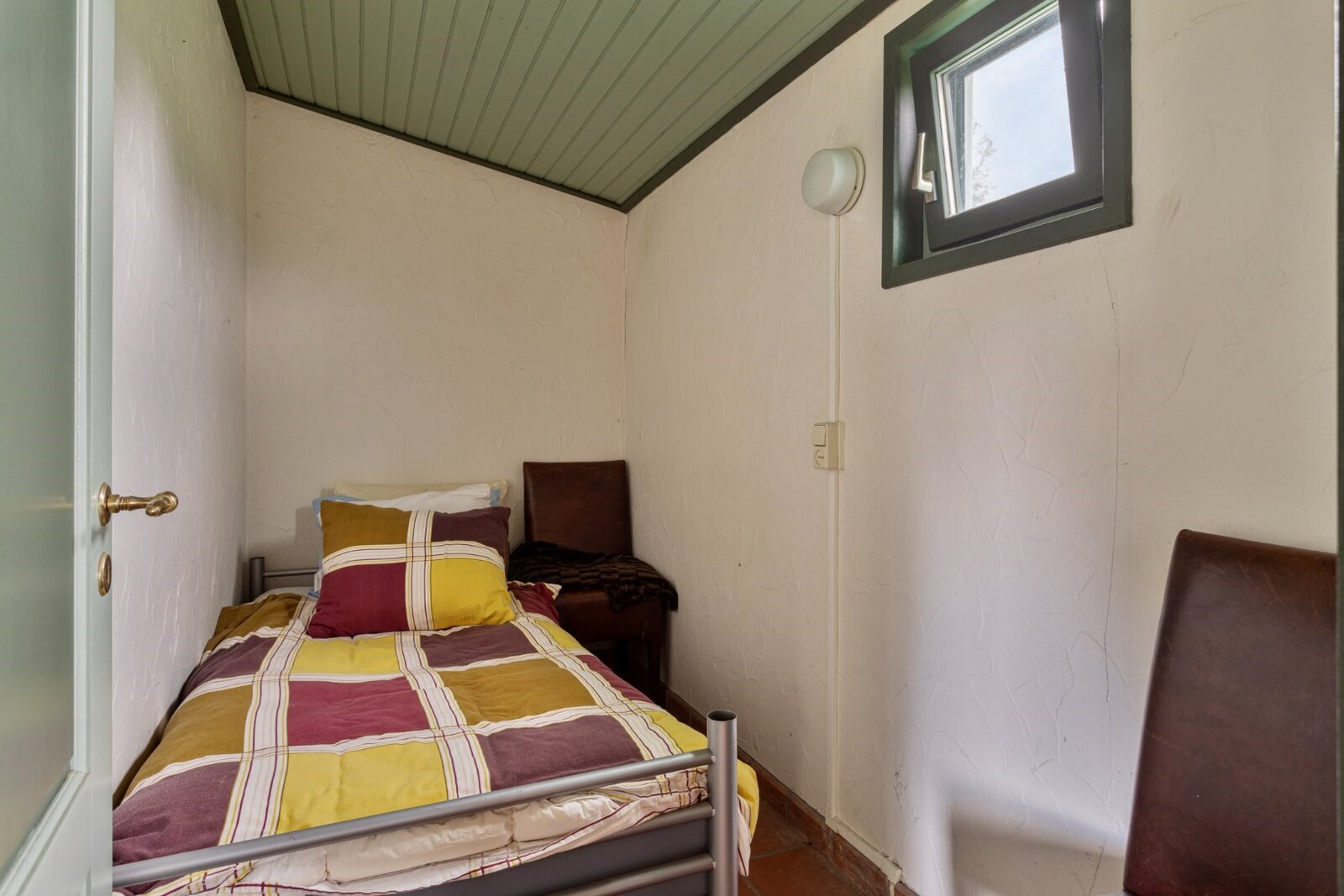 Aan de achterzijde van de woning is er een slaapkamer met aansluitende walk in closet en badkamer gesitueerd. De slaapkamer biedt een fenomenaal zicht over het polderlandschap. De aangrenzende badkamer is ingericht met een douchecabine, wastafelmeubel en een toilet.