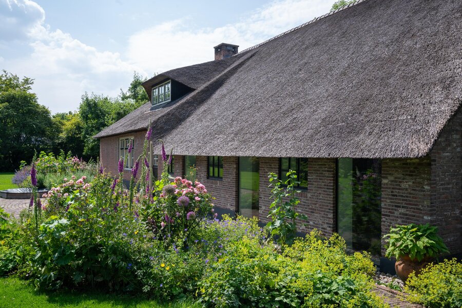 The original farmhouse dates back to circa 1600, while the detached outbuilding was added in 2000, designed by renowned local architect Menno Ongering. Built with care and architectural sensitivity, its thatched roof and wooden cladding reflect the character and heritage of the area.