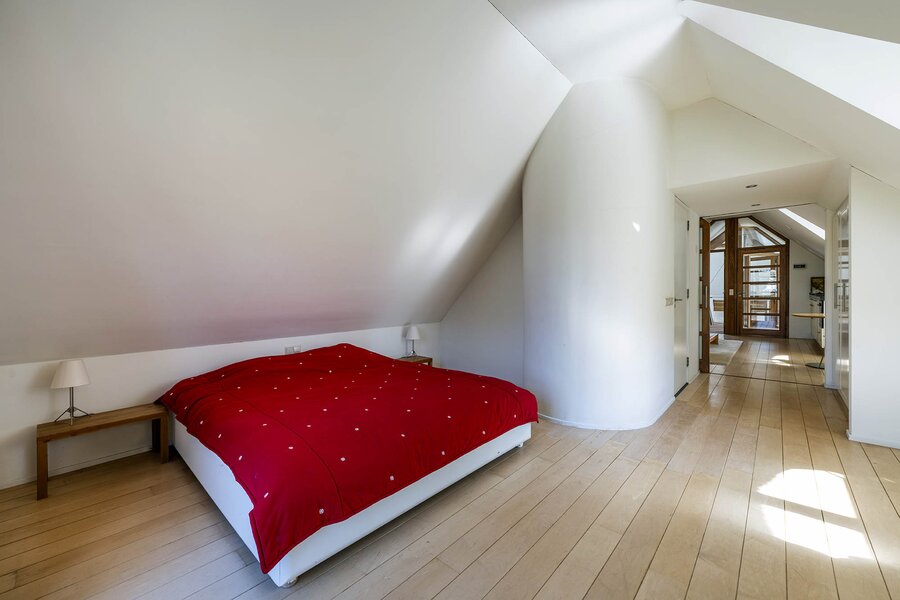 Verdieping: Lichte overloop met vide en aansluitend een hele ruime atelier/studeerkamer. Deze ruimte is tevens ideaal voor het creëren van een kinderspeelruimte c.q. televisieruimte. Maar zou ook een prima grote 4e slaapkamer kunnen worden. Voorts bevinden zich hier 2 slaapkamers en een aparte 2e (kinder)badkamer voorzien van een ligbad, wastafel en 3e toilet. Op de gang zijn een 3-tal ruime vaste kasten.