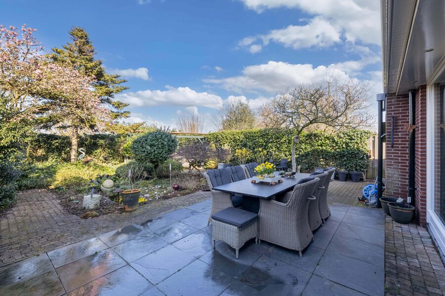 De achtertuin van circa 13 meter diep ligt gunstig op het westen, waardoor u hier tot in de avond kunt genieten van de zon. De tuin is verzorgd aangelegd en biedt meerdere zitplekken, zodat er altijd een fijne plek te vinden is om te ontspannen of te dineren.