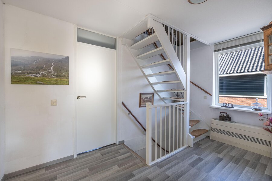 Via een vlizotrap is bovendien een ruime vliering met stahoogte bereikbaar, ideaal voor extra bergruimte.