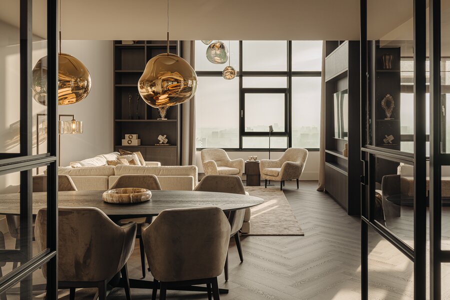 This fully renovated penthouse of approximately 183 m² is located on the 20th and 21st floors of Résidence L’Étoile and offers exceptional living comfort in Amsterdam Zuid.