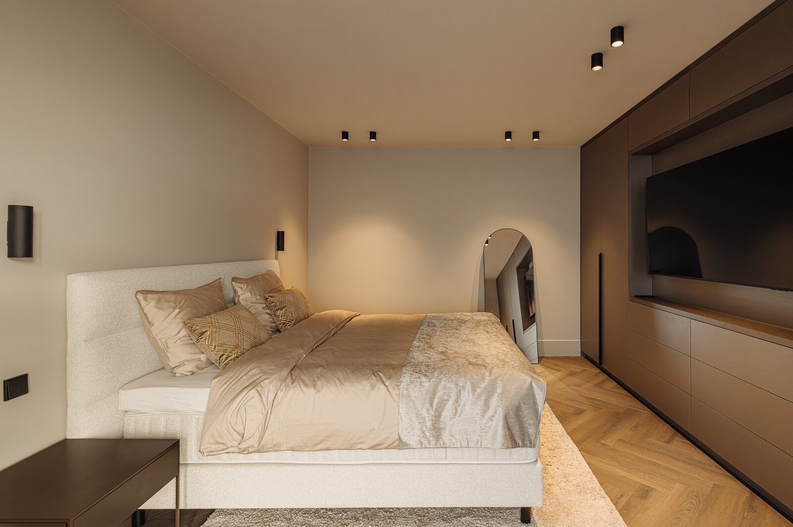 Het appartement heeft drie slaapkamers, twee badkamers en een open living-keuken met centraal kookeiland. De royale living met een plafondhoogte tot 5,5 meter is licht en ruim, met toegang tot een westelijk terras voor middag- en avondzon. Vanuit het appartement heeft u panoramisch uitzicht over Schiphol, de Zuidas en de stad Amsterdam. De woning is bereikbaar via een privé-lift, voor maximale privacy en gemak.