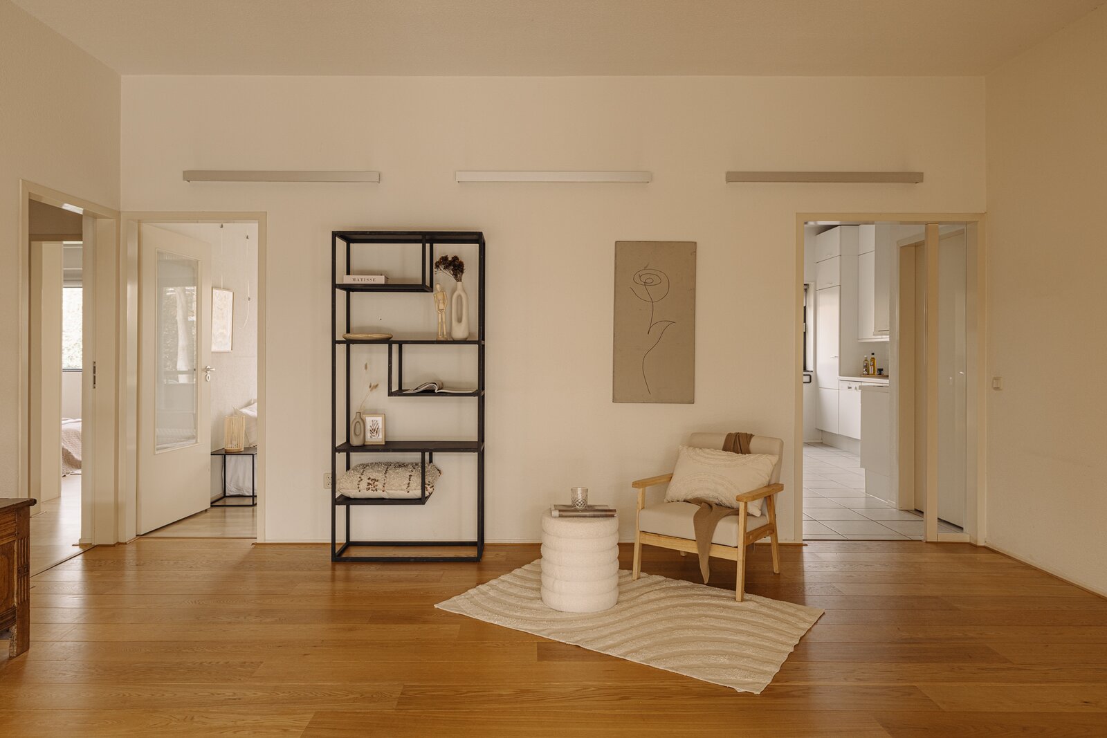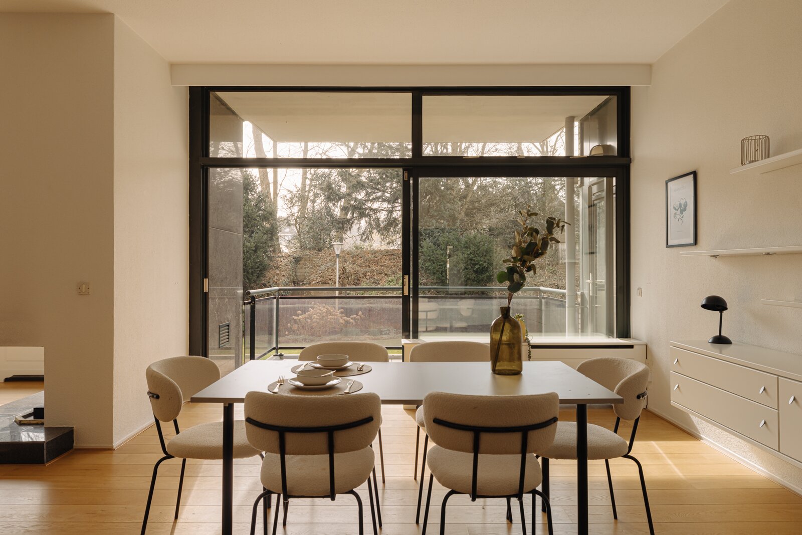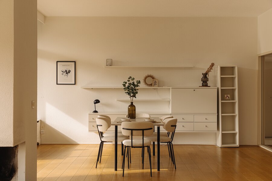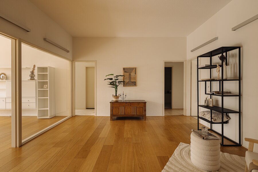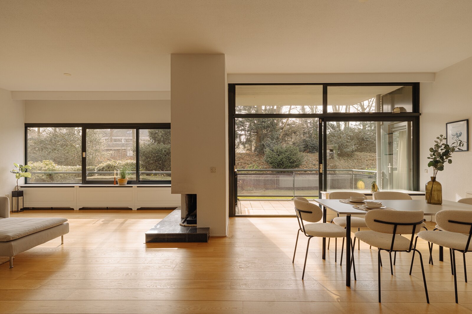 De verzorgde centrale entree met lift en afgesloten hal vormt een stijlvol welkom. Binnenkomst in het appartement via een royale ontvangsthal met garderobe en gastentoilet. De indrukwekkende woonkamer strekt zich uit over de volle breedte en wordt gekenmerkt door grote raampartijen en een prettige lichtinval. De schuifpui biedt toegang tot het zonnige terras met uitzicht op de groene binnentuin, een heerlijke plek om in alle privacy te genieten. De keuken is praktisch en verzorgd uitgevoerd en voorzien van diverse inbouwapparatuur, met directe toegang tot het balkon.