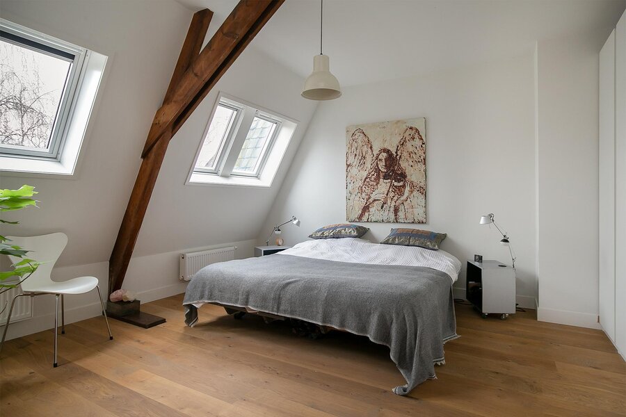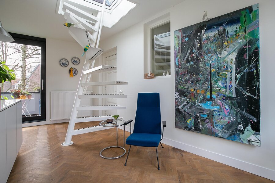 Op slechts 300 meter afstand van het Centraal Station én de historische binnenstad van Zwolle vinden we dit in 2018 volledig gerenoveerde bovenwoning (penthouse) met authentieke details zoals glas in lood en plafond ornamenten. Bij de renovatie is de villa uitgebouwd en opgedeeld in twee appartementen waarvan het bovenste appartement nu in de verkoop is. De uitbouw is volledig geïsoleerd en van het gerenoveerde gedeelte zijn de muren en het dak geïsoleerd en de ramen vervangen door dubbelglas (monumenten isolatieglas).