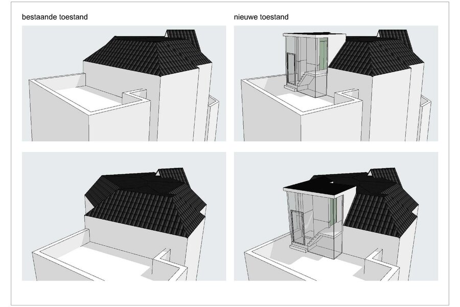 Er is reeds gekeken naar de mogelijkheden een lift te plaatsen in de woning, schetsen hiervan bevinden zich achter de foto's.