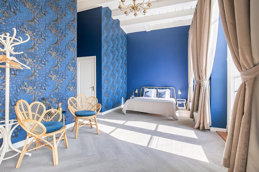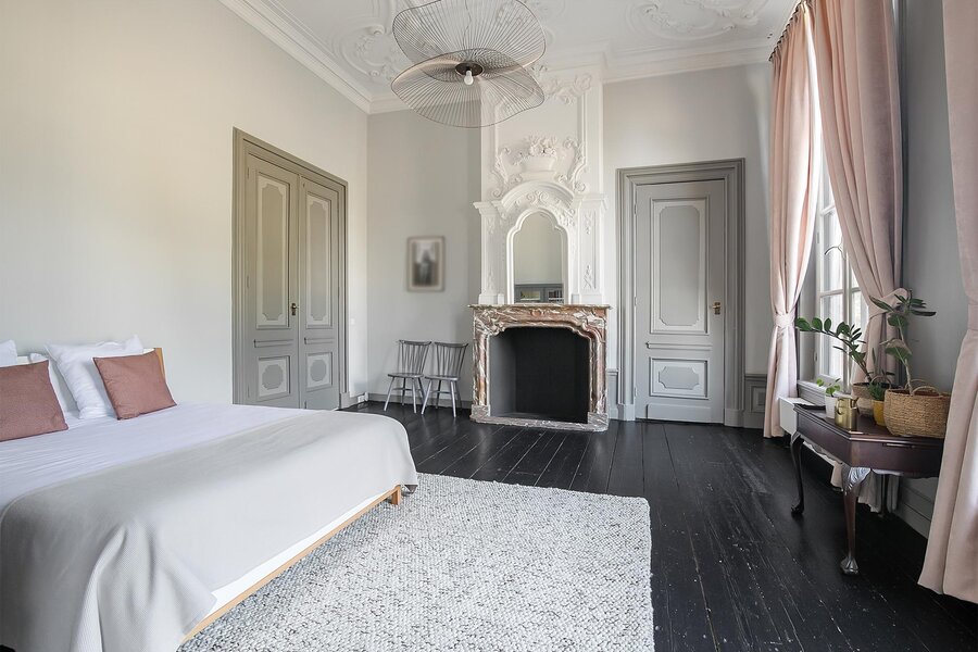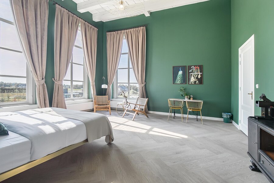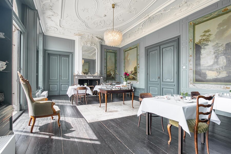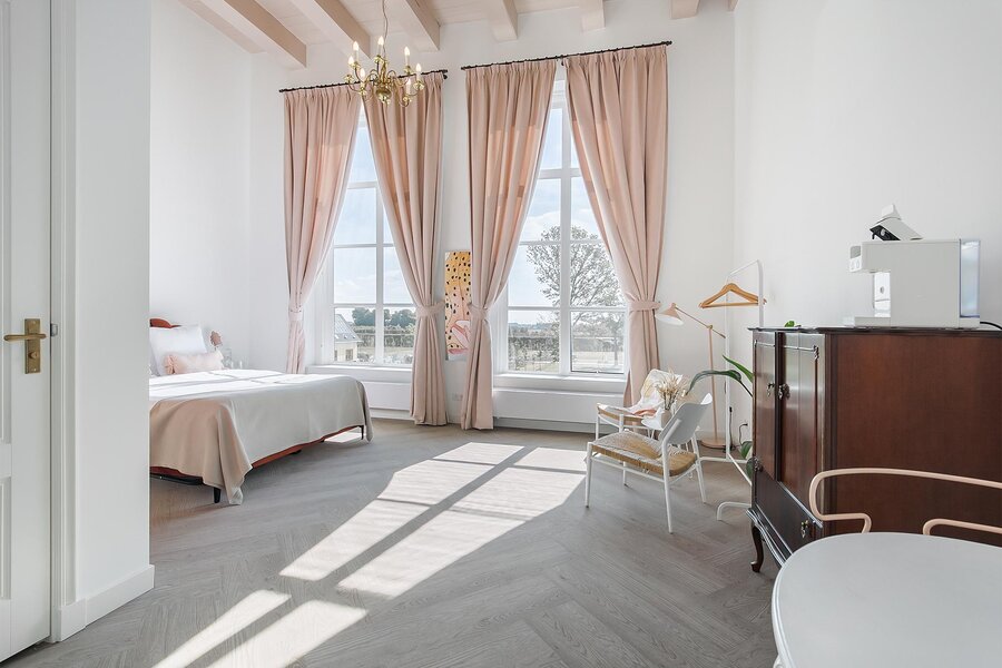 De 5 royale suites t.b.v. de B&B hebben allen een eigen badkamer en zijn gelegen op de 1e verdieping. De ontbijtzaal bevindt zich op begane grond aan de achterzijde, hierdoor heeft u een prachtig zicht op lanen met eikenbomen aan weerzijden van het landhuis.