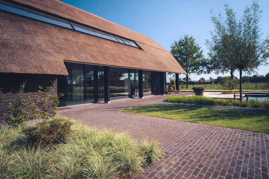 • Duurzaam Straatwerk: Het straatwerk en grind zijn aangelegd in duurzaam beton;