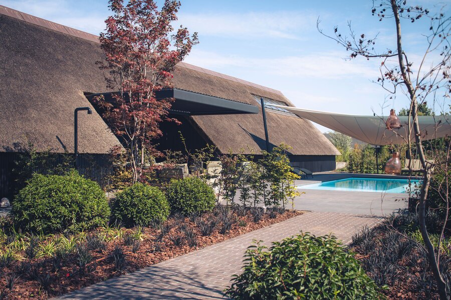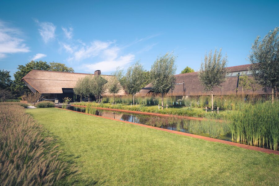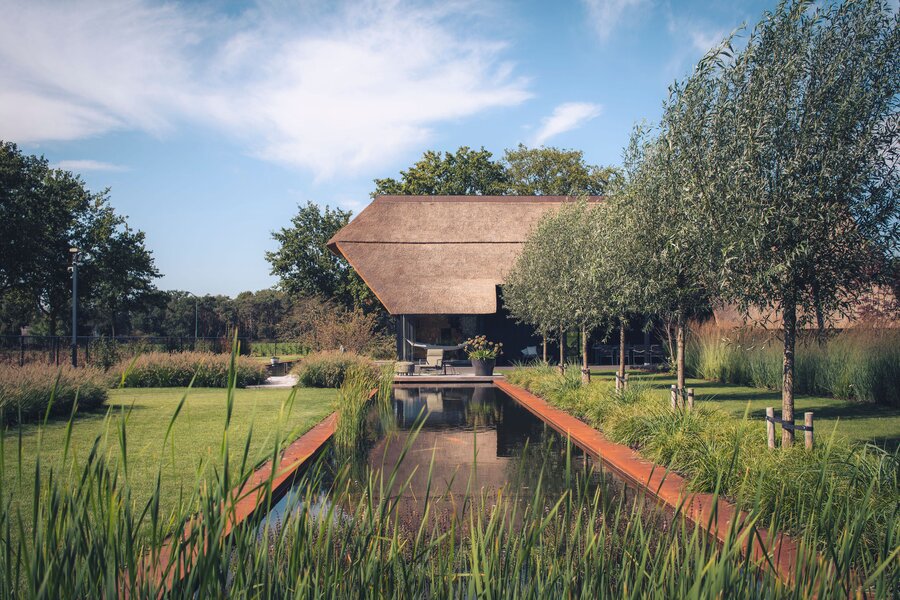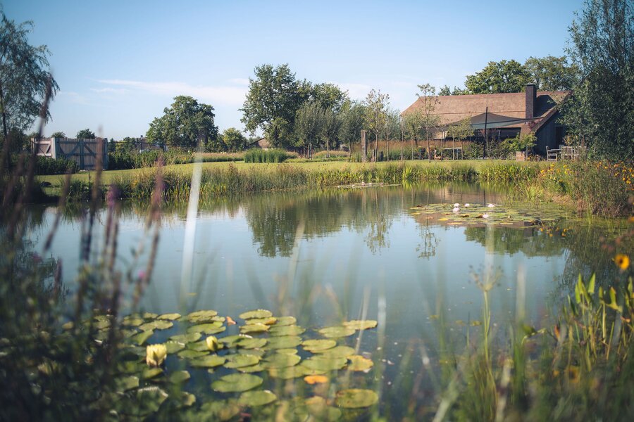 Voor de tuinliefhebber is de weelderige en afgeschermde achtertuin een waar paradijs, compleet met een sier- en zwemvijver. De ligging van het landhuis, te midden van een uitgestrekt perceel, garandeert absolute privacy en biedt zowel binnen als buiten de gelegenheid om volledig tot rust te komen.