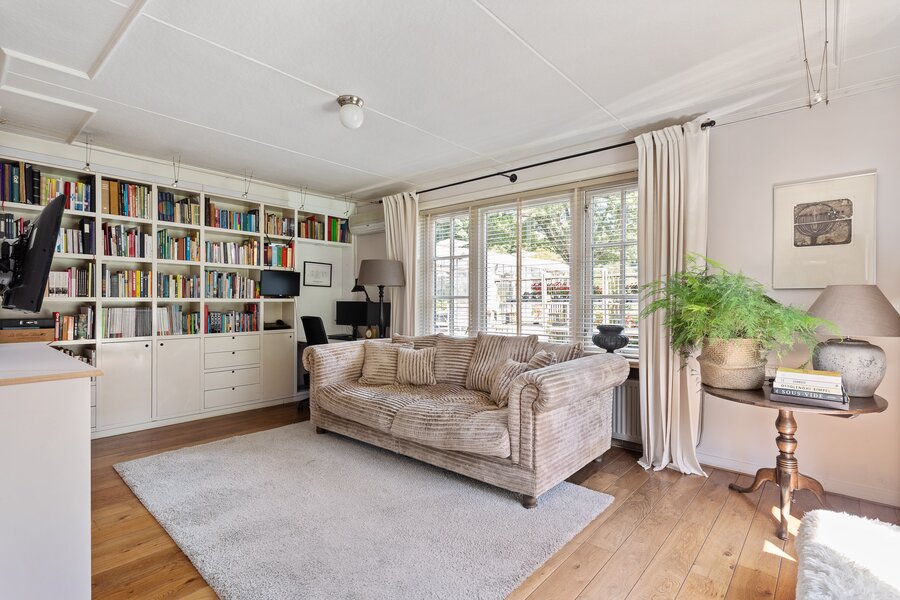 Aan de achterzijde vind je een extra kamer die nu dienstdoet als kantoor, maar waar je alle kanten mee op kunt. Dankzij de schuifdeuren is de ruimte eenvoudig af te sluiten. De aparte entree middels de bijkeuken, met extra toilet, heb je ook nog eens volop mogelijkheden voor eigen invulling.