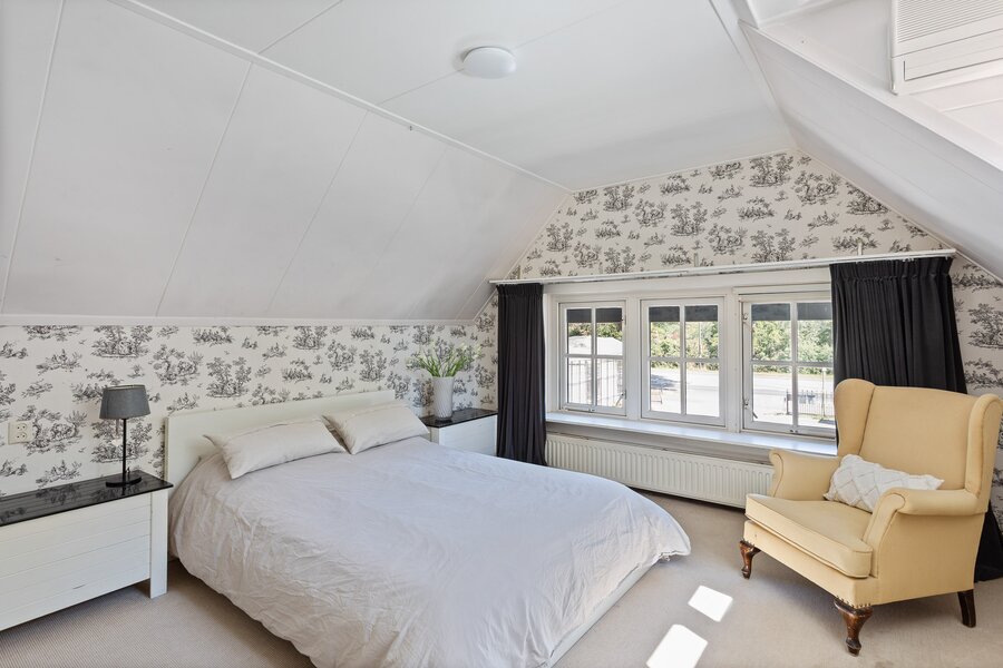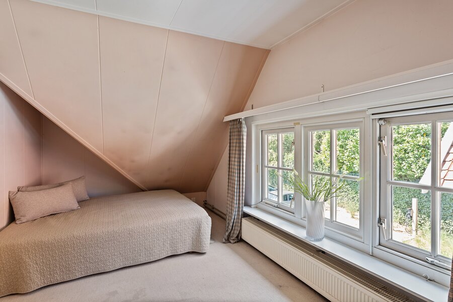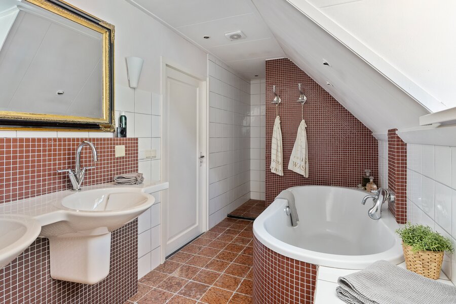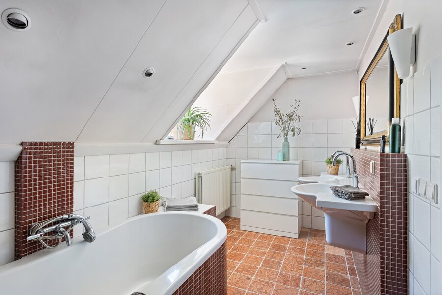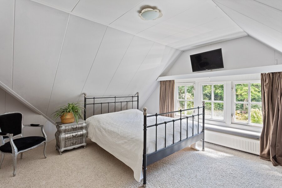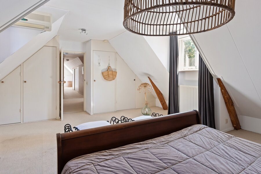 Boven gaat het woongenot gewoon verder. De hoofdslaapkamer is royaal opgezet, voorzien van airco, vaste kasten en twee charmante dakkapellen waardoor het heerlijk licht is. Langs de lange overloop liggen nog twee slaapkamers, en helemaal aan het eind vind je er nog één. Stuk voor stuk hebben ze hun eigen karakter. De badkamer is compleet met alles wat je nodig hebt én een praktisch detail: het toilet is separaat.