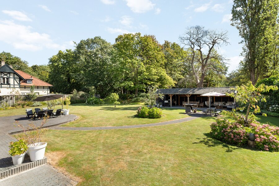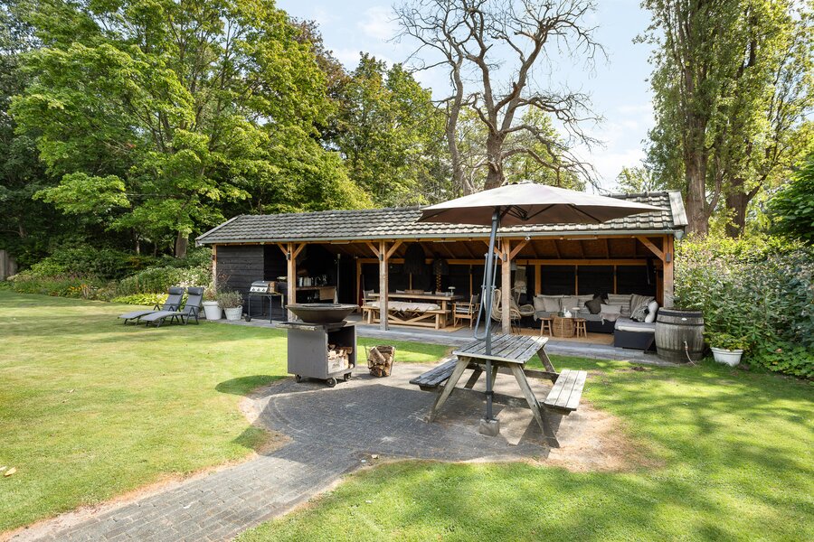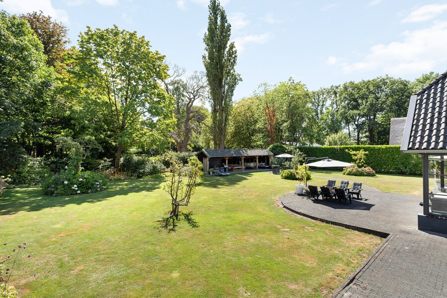 En dan de tuin... de echte eyecatcher van de woning. Het royale gazon geeft de kids alle vrijheid om te spelen en te sporten. Daarnaast vind je hier een eigen boomgaard met appel- en perenbomen. Terwijl de kinderen zich vermaken, kies jij je eigen favoriete plek: loungen in de zon, aanschuiven aan de eettafel of ontspannen onder de overkapping met buitenkeuken.