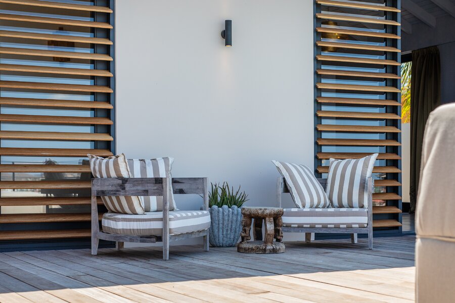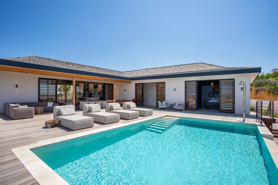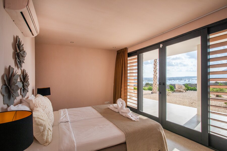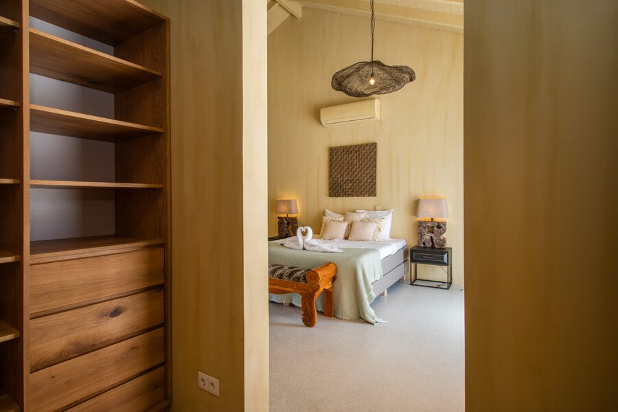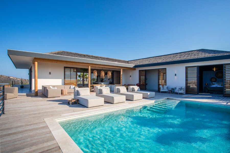 Links van de veranda bevinden zich de twee master bedrooms. Na het opstaan een paar baantjes trekken wordt zo wel heel verleidelijk. En eerlijk is eerlijk: beter kun je je dag toch niet beginnen?