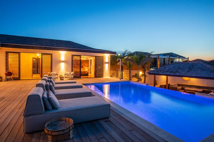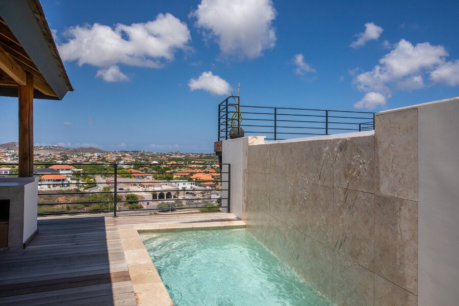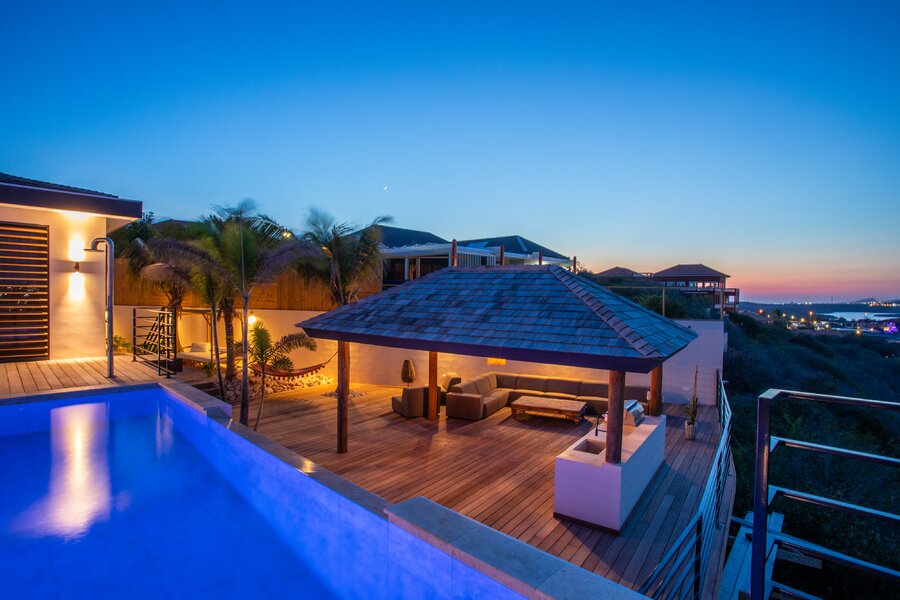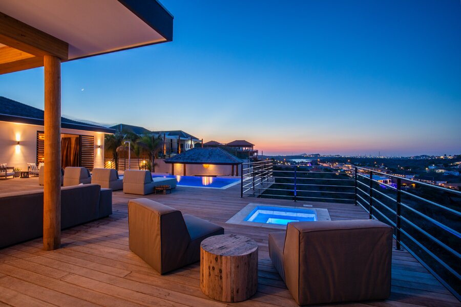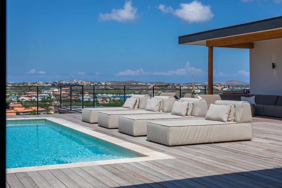 En dat is nog maar het begin. Want ook de villa zelf is een eclectisch juweel waarin geen woonwens onbeantwoord blijft. Comfort, luxe, design en genieten staan er bijna op de gevel geschreven. Villa Panaroma beschikt bijvoorbeeld niet over één of twee zwembaden, deze woning heeft er welgeteld vier: een grote infinity pool, een verwarmde jacuzzi en een champagne bad met meerdere zitjes. Via de buitentrap loop je vanaf het vlonderdeck naar de tweede buitenruimte waar je verwelkomd wordt door een palapa, een buitenkeuken en….een vierde zwembad. Wie zich een wereldster wil voelen is in Villa Panorama aan het juiste adres.