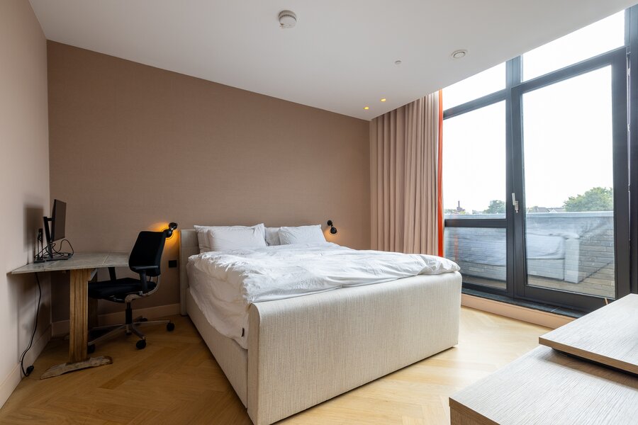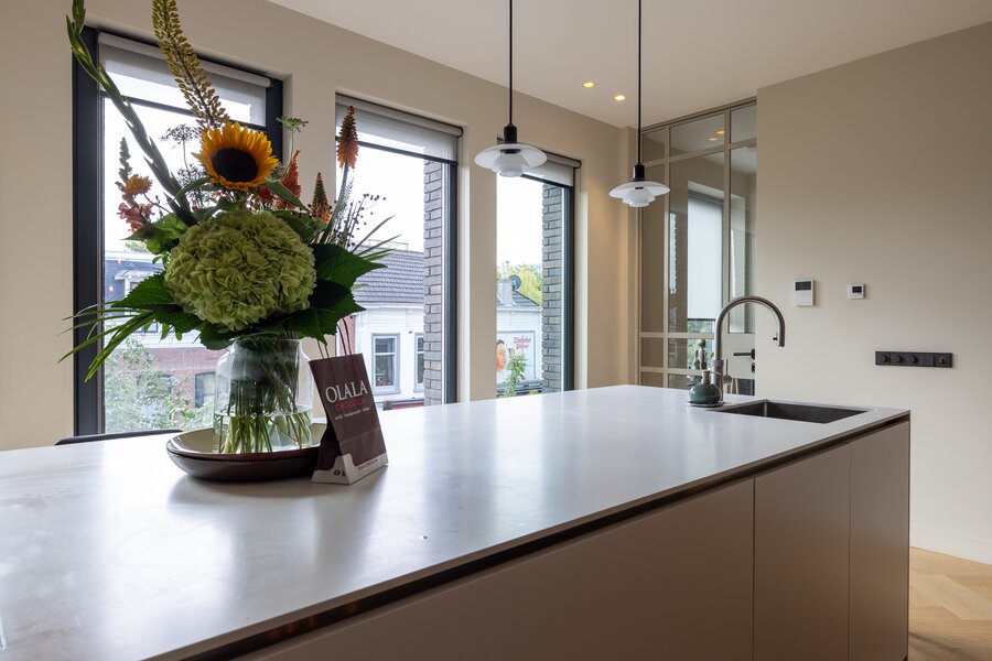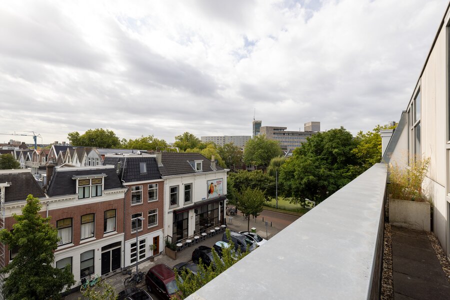Spectacular loft of 170 m² with a gigantic roof terrace, huge living room, modern luxurious kitchen, 2 bedrooms, 2 bathrooms and an own house elevator! This luxurious loft is part of the small scale new development "Noordsingel Lofts" build in 2017. The location is perfect on the corner of the Noordsingel and the Tollensstraat in the trendy district Oude Noorden.