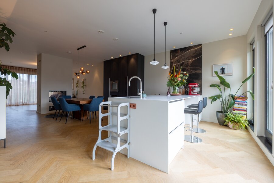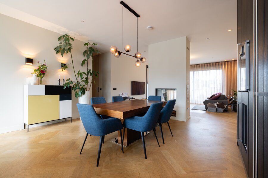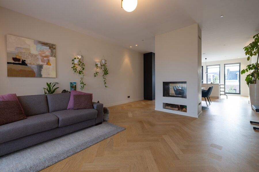 - De verdiepingen zijn voorzien van een visgraat parketvloer
