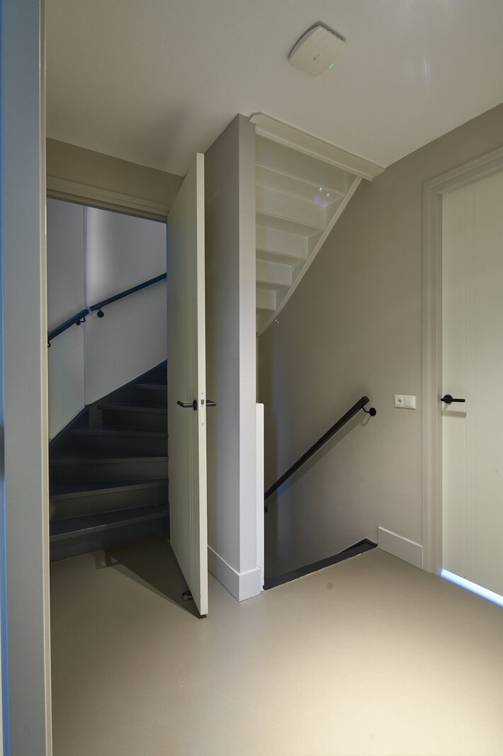 - Verlichting in badkamers, bijkeuken en trap naar 2e etage werken op sensor;