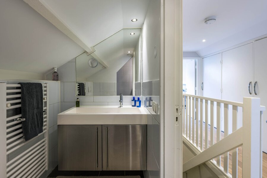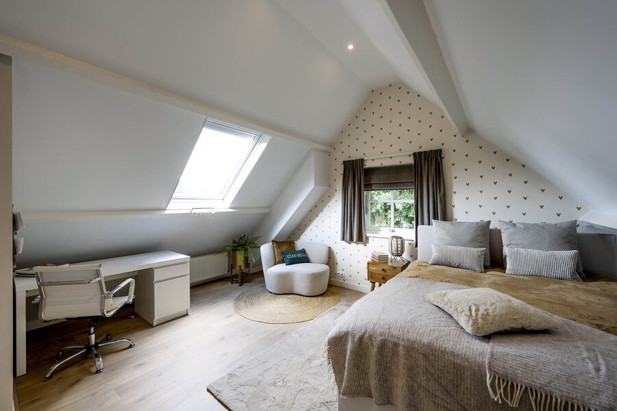 Hier bevinden zich nog eens twee slaapkamers en een derde badkamer met douche en toilet. Dankzij de vele vaste kasten is er volop bergruimte. De indeling leent zich uitstekend voor een gezin met meerdere kinderen of logees.