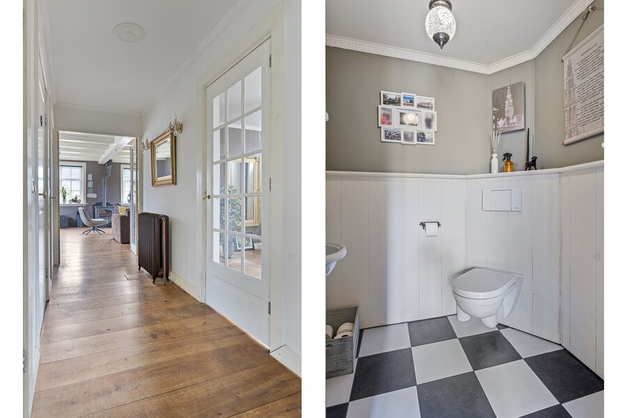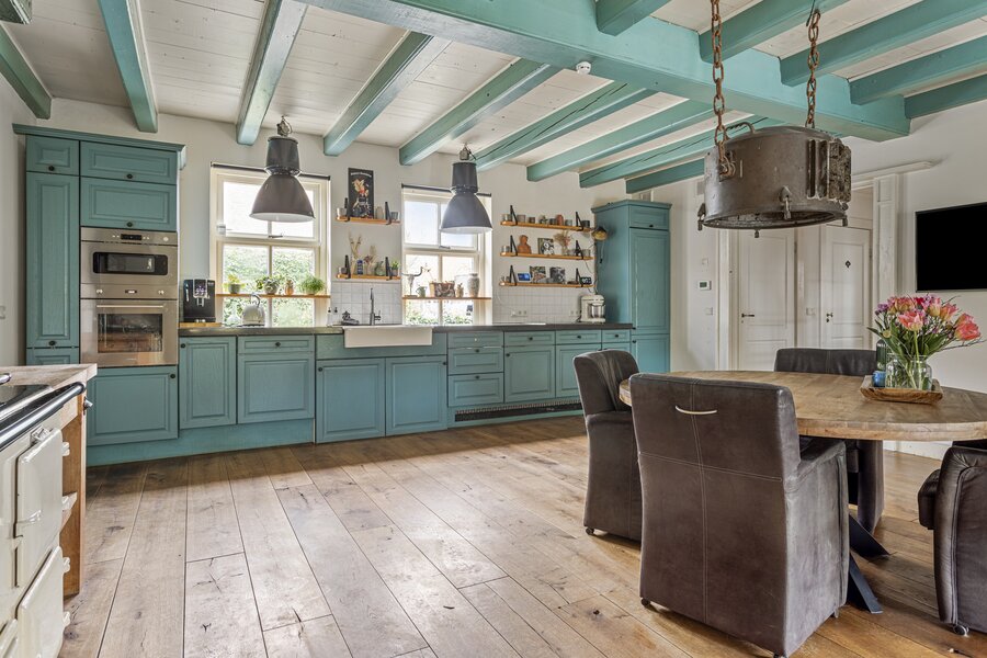 Volledig herbouwd in 2007, maar met behoud van het authentieke karakter. Dit woonhuis ademt sfeer en kwaliteit! De royale woonkeuken van ca. 38 m² is het kloppend hart van het huis, met als absolute eyecatcher de imposante Aga Cooker. Balkenplafonds, een stijlvolle schouw, fraaie parketvloeren en een perfecte afwerking zorgen voor een warme en luxe uitstraling.