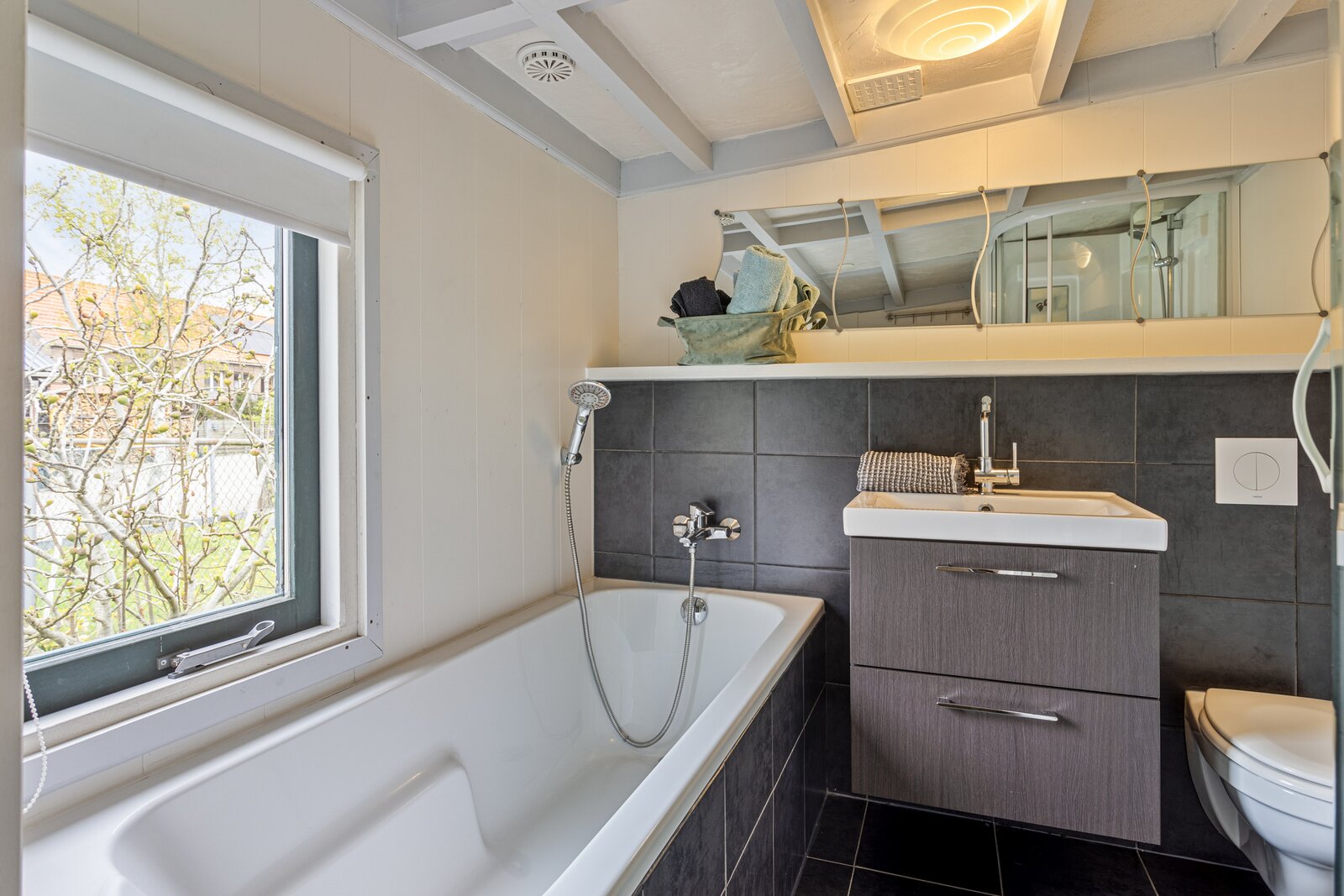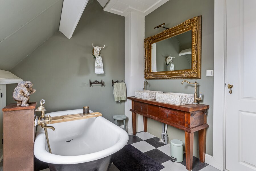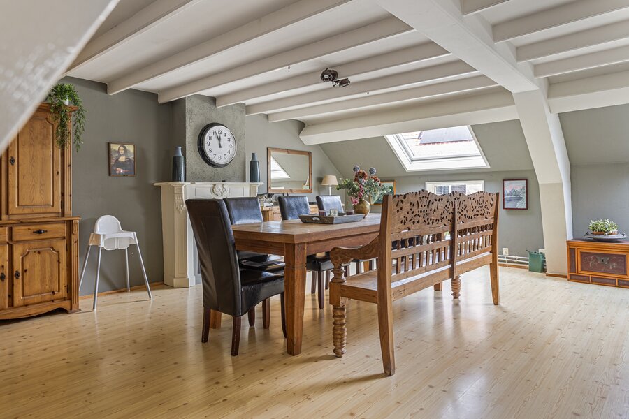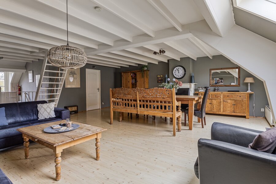 De sfeervolle woonkamer sluit naadloos aan bij de stijl van de keuken en biedt volop ruimte voor gezelligheid. Boven zijn drie keurig afgewerkte slaapkamers, waaronder een indrukwekkende master bedroom met eigen douche, inloopkast én een charmante halfopen zolderruimte. De ruime badkamer is voorzien van een ligbad, douche en toilet. Overal vindt u praktische opbergruimtes.